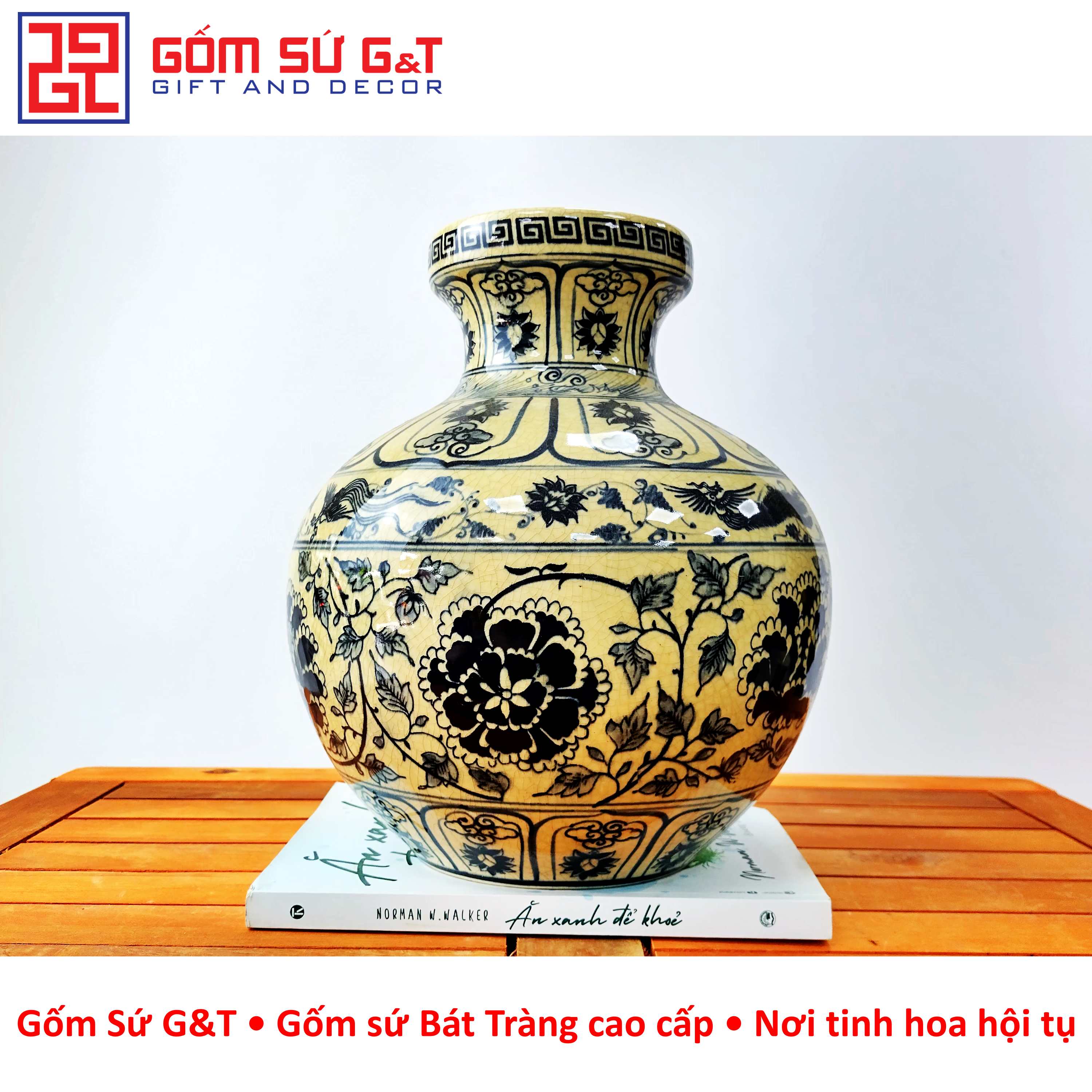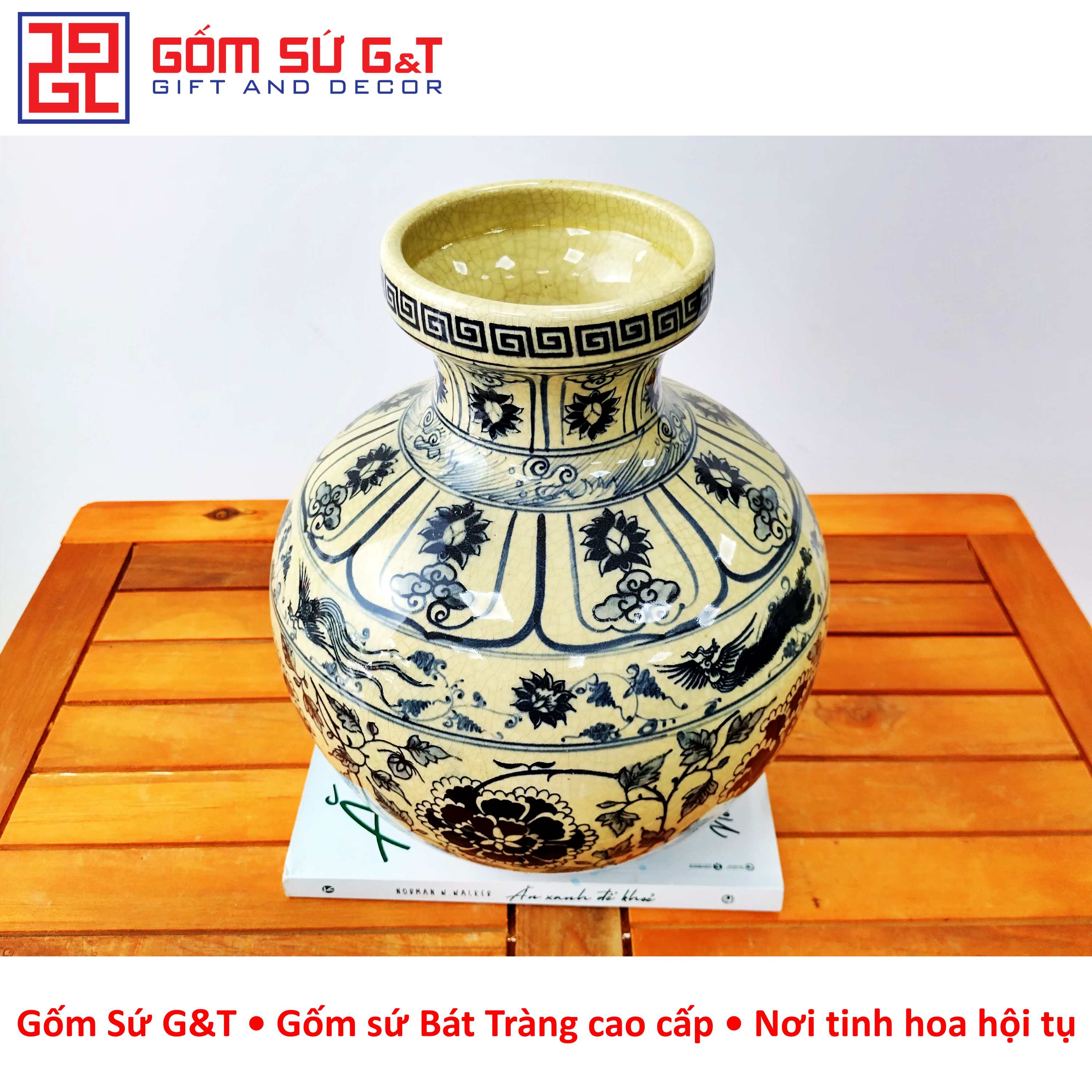 Lọ hoa phượng hoàng men rạn bóng được vẽ tay thủ công trên nền men rạn. Sản phẩm được vẽ tay tỉ mỉ, trên cổ lọ vẽ Phượng hoàng, vì thế mà tác phẩm có tên Lọ hoa phượng hoàng men rạn.