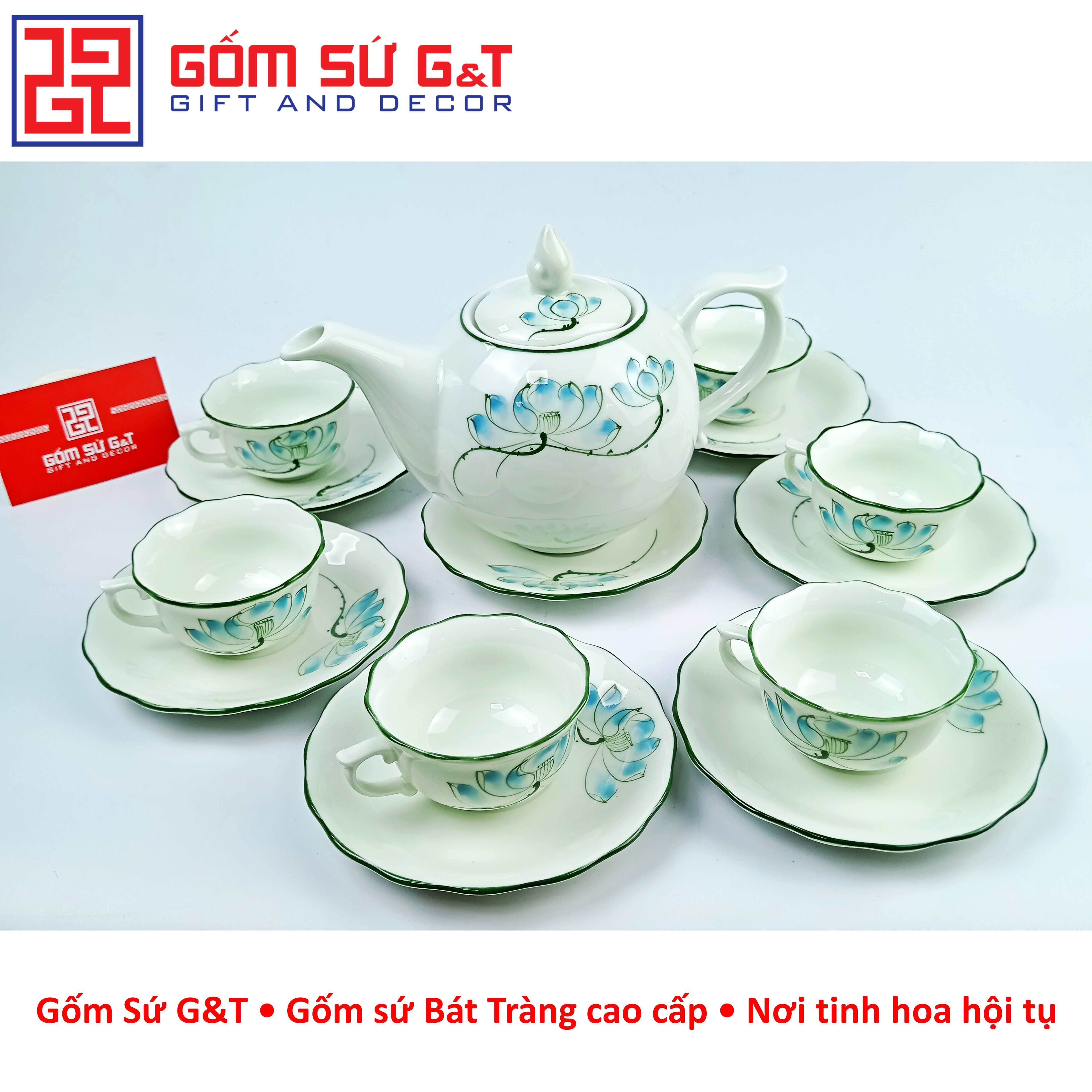 Men kem sứ là điểm nhấn quan trọng của bộ ấm chén. Màu sắc và bề mặt men được thể hiện một cách tỉ mỉ và hoàn hảo. Men sứ có thể được áp dụng một cách đều đặn và chính xác, tạo ra một lớp men mịn và bóng.