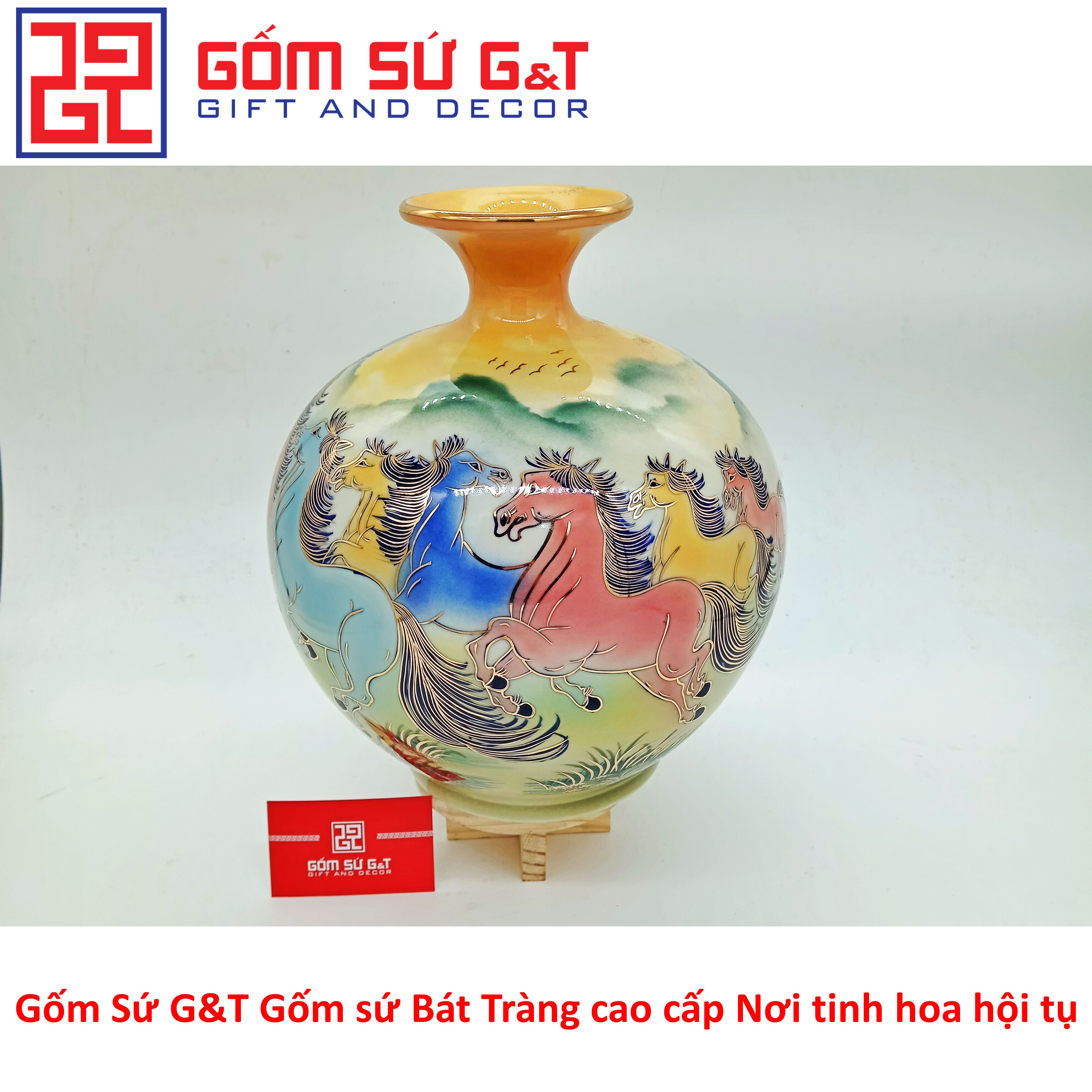 Bóng hút tài lộc mã đáo thành công vẽ vàng kim không chỉ là một vật phẩm trang trí phong thủy đẹp mắt mà còn là một biểu tượng của sự thịnh vượng và may mắn. Được làm thủ công từ gốm sứ cao cấp, mỗi chiếc bình mang trong mình một sự tinh tế và sự chăm sóc tỉ mỉ từ các nghệ nhân tài ba tại làng gốm Bát Tràng.