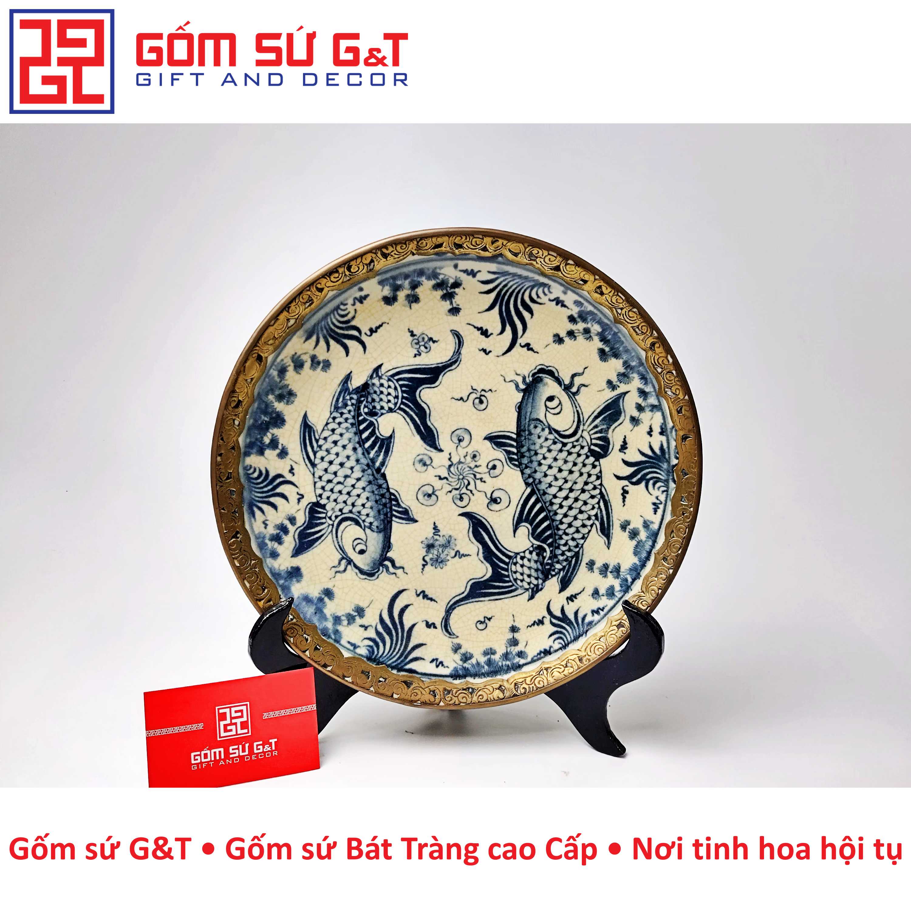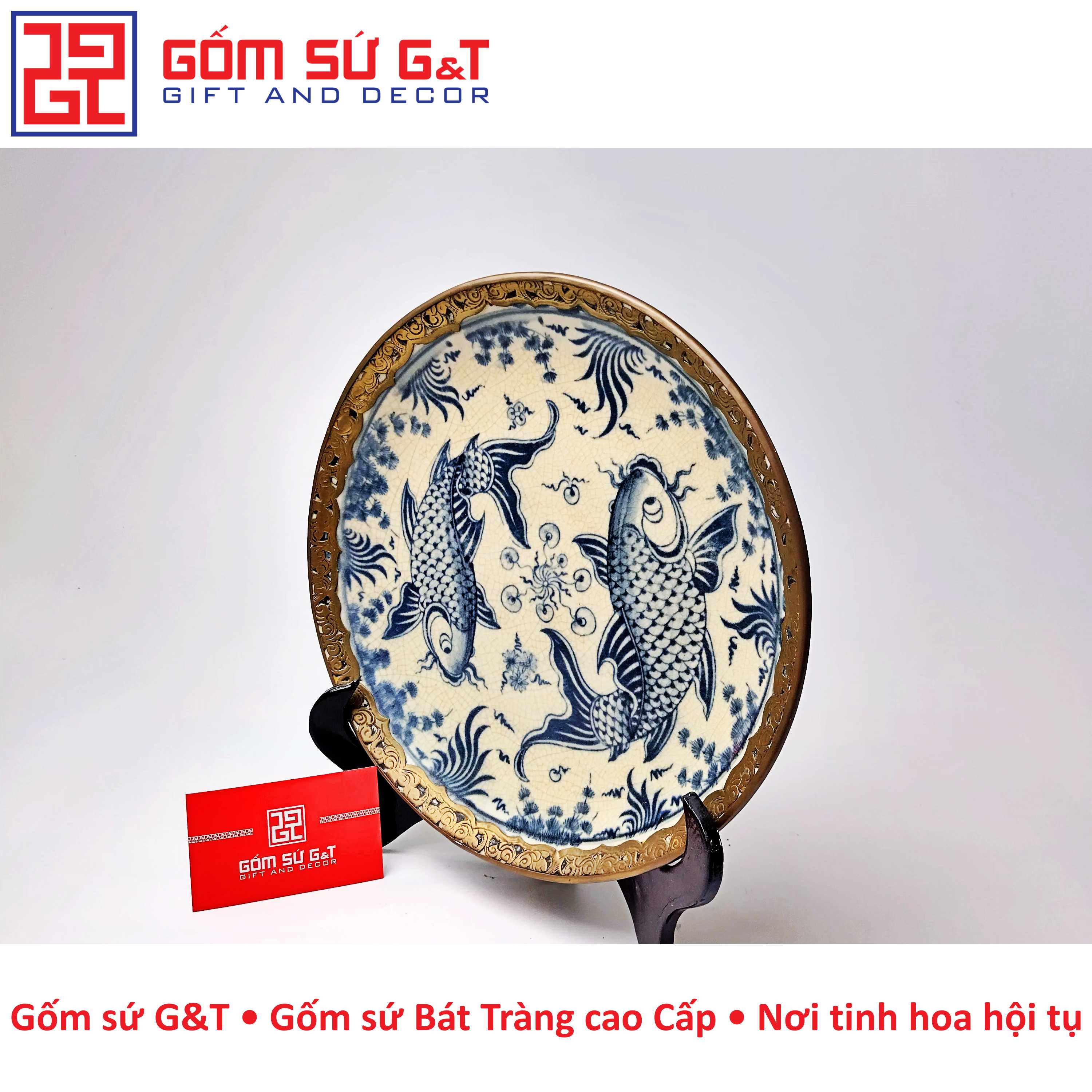 Đĩa cảnh men rạn bọc đồng song ngư có đủ 4 kích thước 26cm, 30 cm, 35 cm và 40 cm