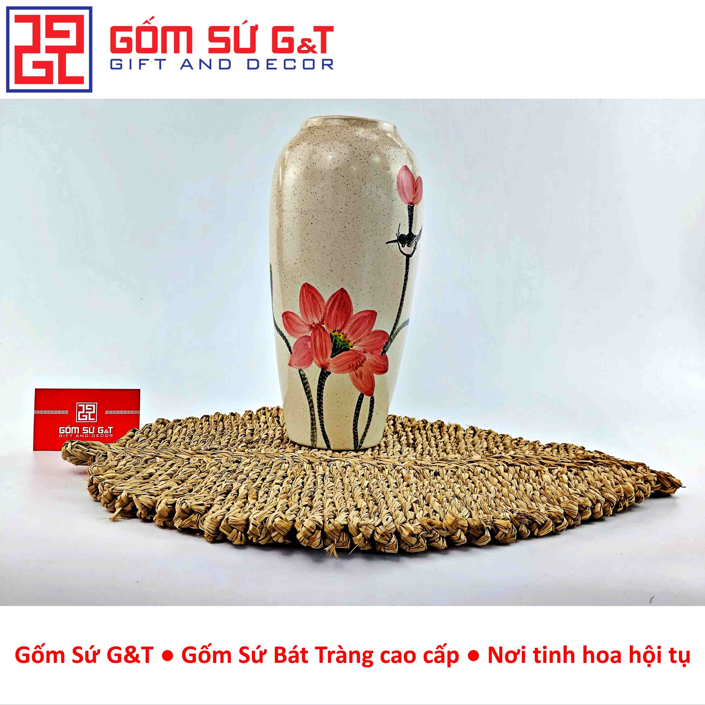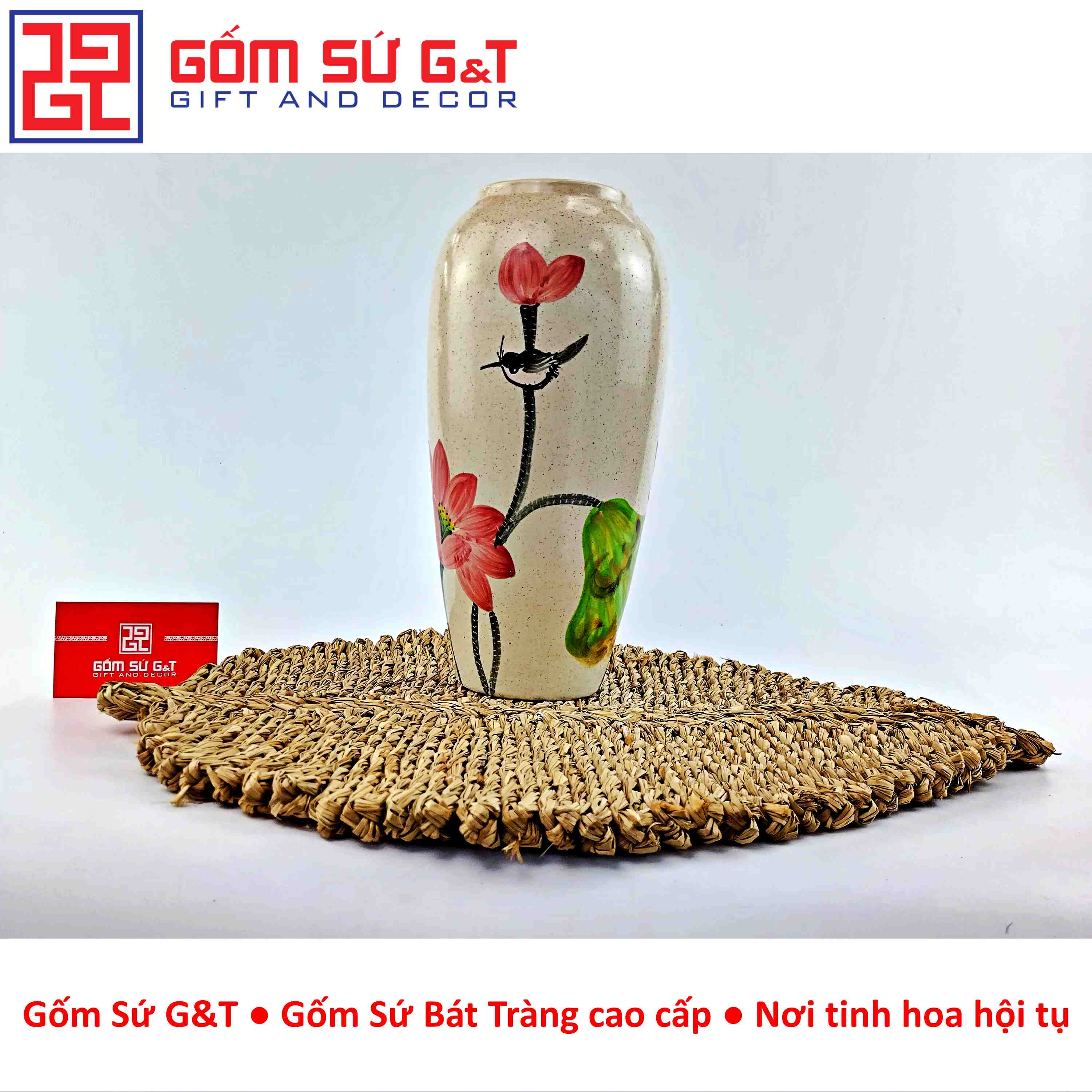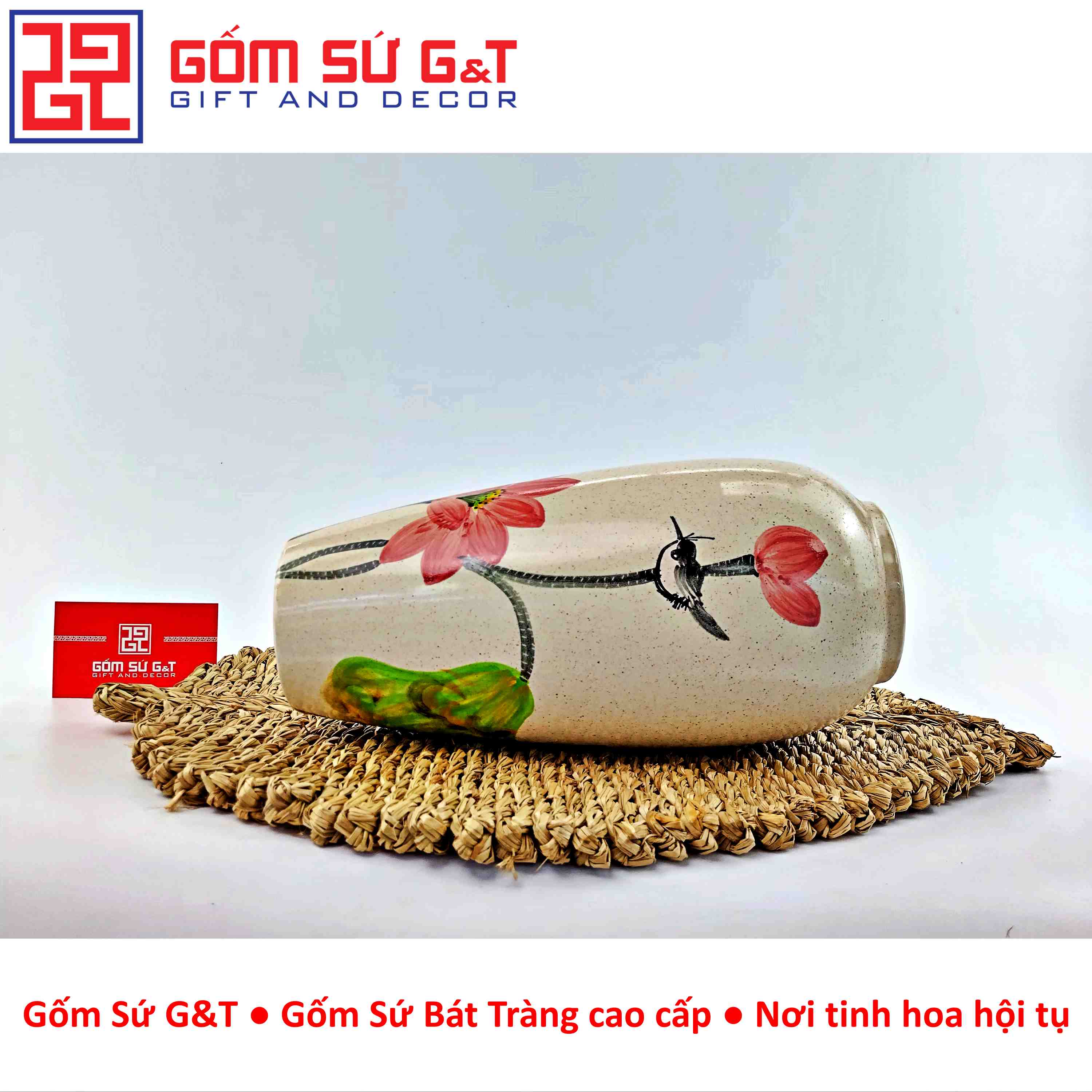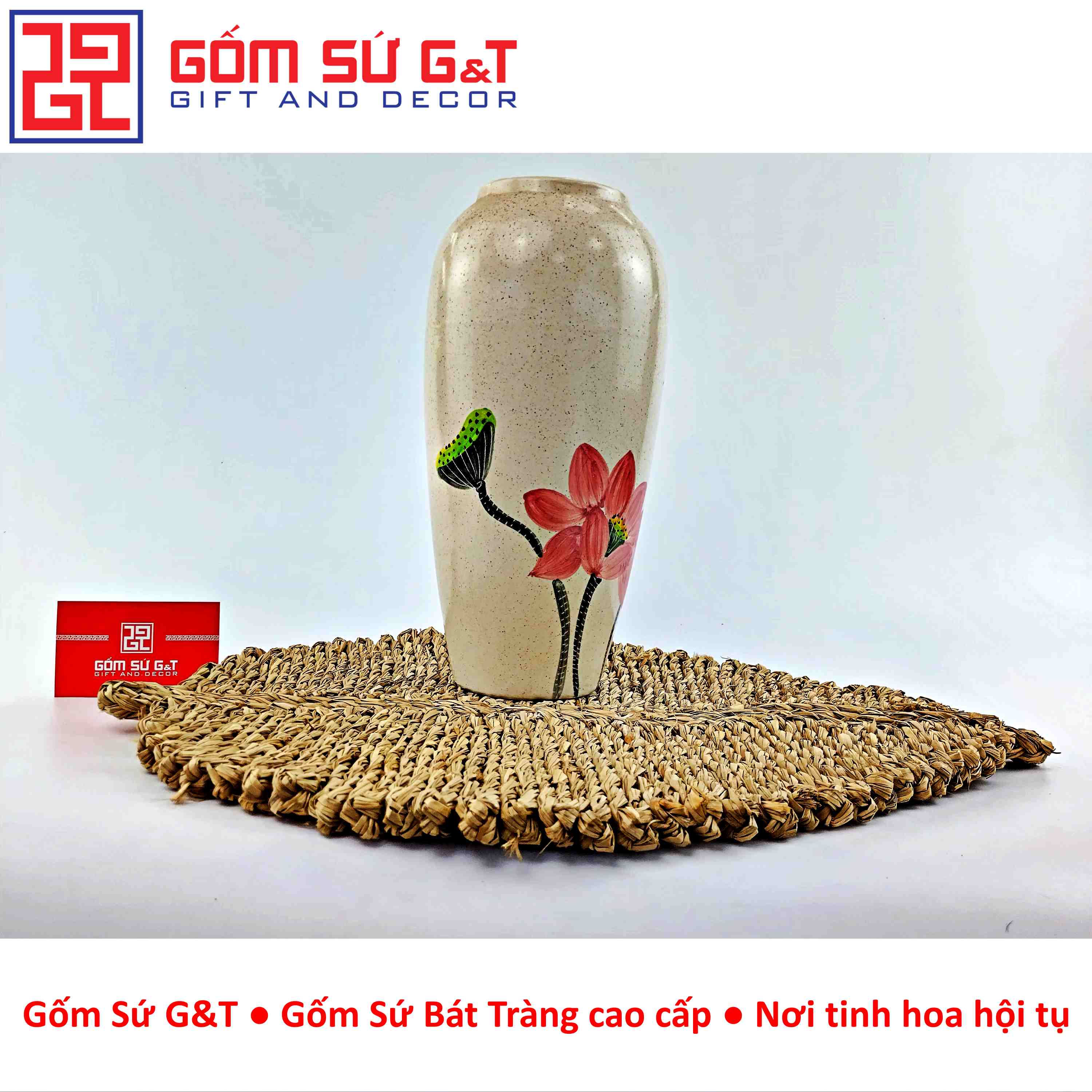 Gốm Sứ G&T tự hào là đơn vị cung cấp gốm sứ Bát Tràng chính hãng, cam kết chất lượng và giá trị nghệ thuật trong từng sản phẩm. Hãy lựa chọn lọc hoa dáng bom vẽ sen cầm để mang vẻ đẹp tinh hoa và phong thủy tích cực vào ngôi nhà bạn ngay hôm nay!