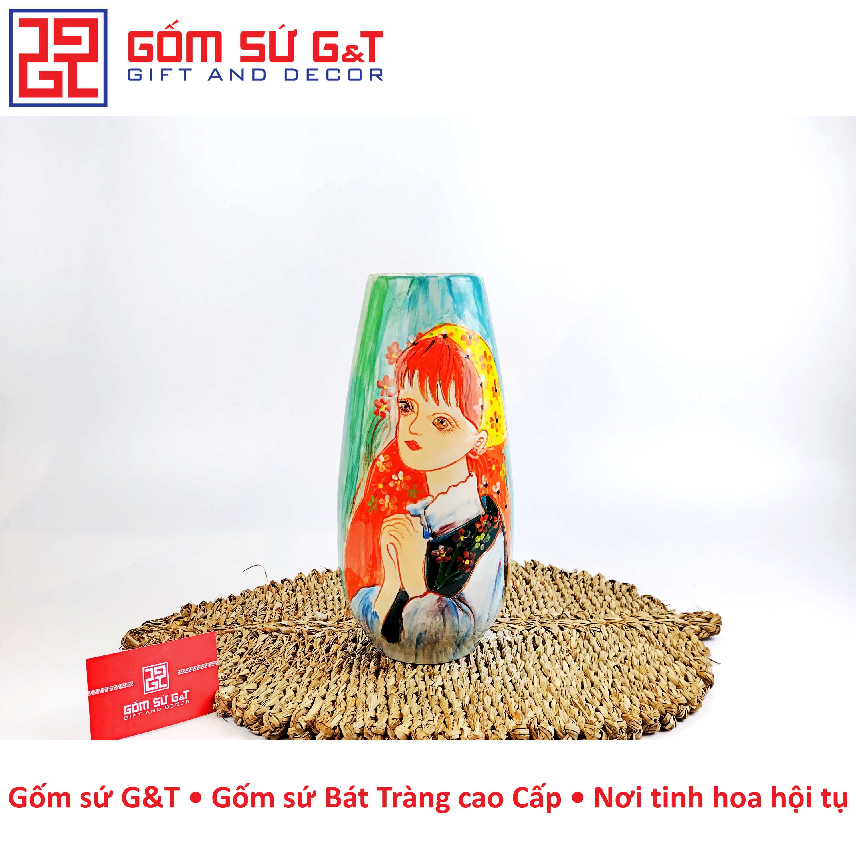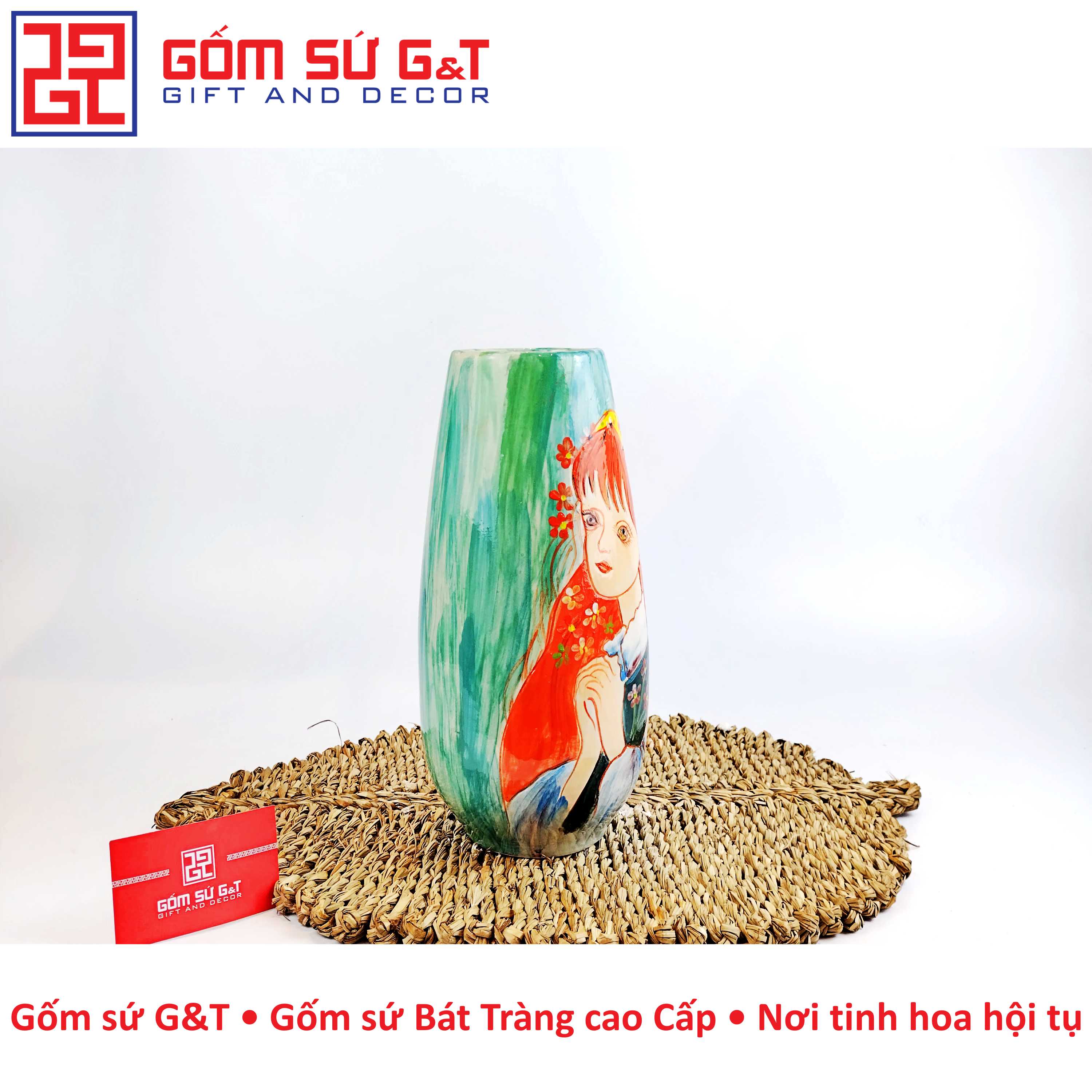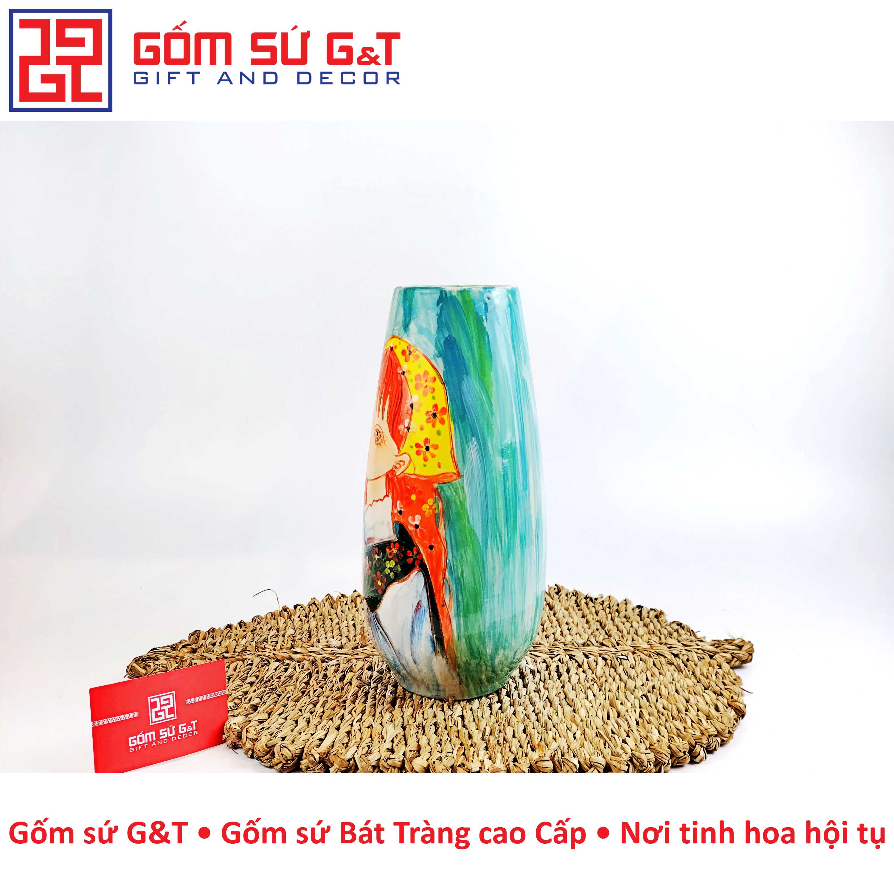 Những bức tranh tinh tế được vẽ tay trên bề mặt lọ hoa dáng bom miệng rộng vẽ cô gái nga không chỉ là hình vẽ đơn thuần mà còn là những câu chuyện được thể hiện qua từng nét vẽ. Nghệ nhân tài hoa thổi hồn vào từng chi tiết, tạo nên một thế giới màu sắc sống động trên sản phẩm gốm sứ. Sự tinh tế trong việc sắp xếp màu sắc và họa tiết vẽ tay giúp lọ hoa trở thành điểm nhấn tuyệt vời cho không gian trang trí.