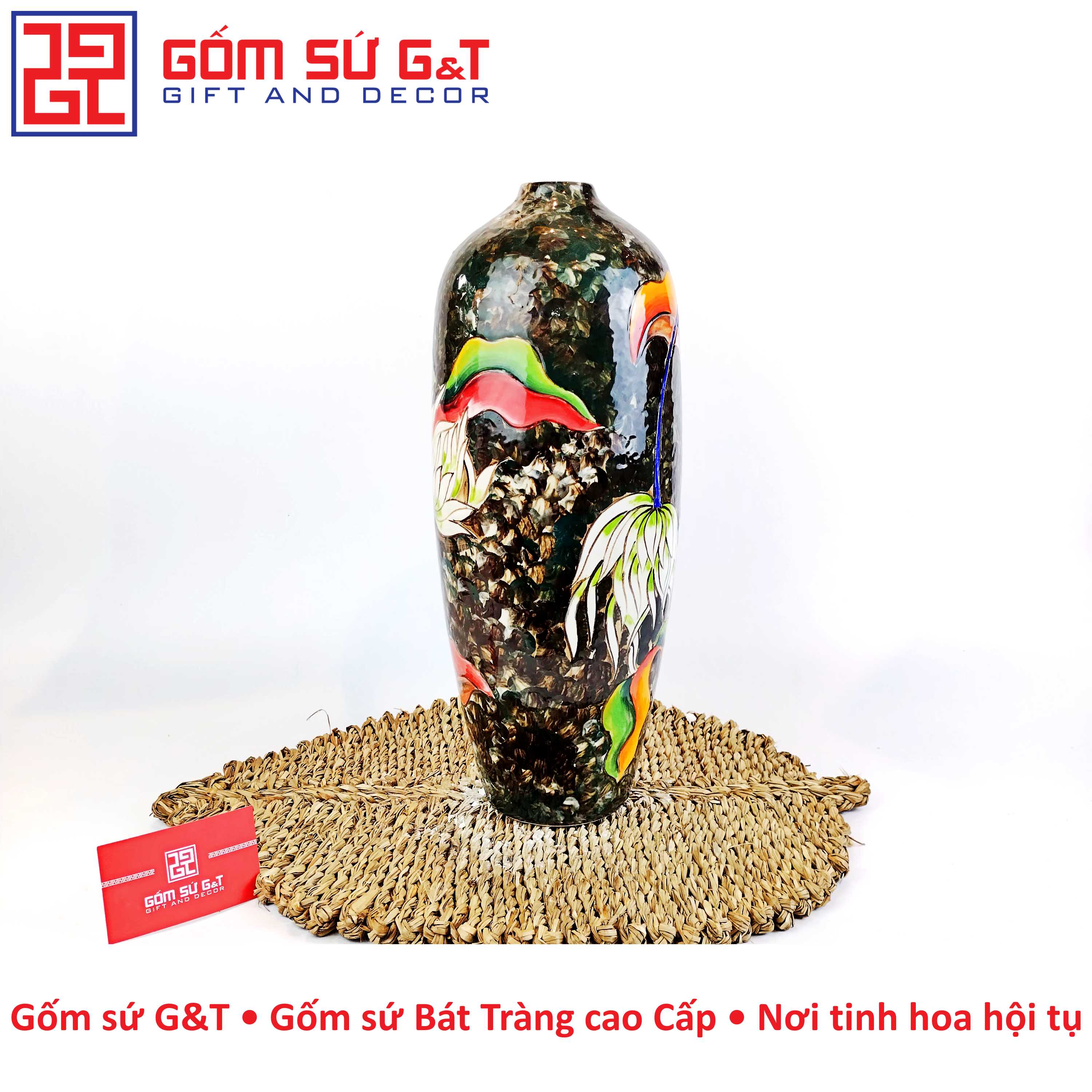 Những bức tranh tinh tế được vẽ tay trên bề mặt lọ hoa dáng bom vẽ hoa chuối không chỉ là hình vẽ đơn thuần mà còn là những câu chuyện được thể hiện qua từng nét vẽ. Nghệ nhân tài hoa thổi hồn vào từng chi tiết, tạo nên một thế giới màu sắc sống động trên sản phẩm gốm sứ. Sự tinh tế trong việc sắp xếp màu sắc và họa tiết vẽ tay giúp lọ hoa trở thành điểm nhấn tuyệt vời cho không gian trang trí.