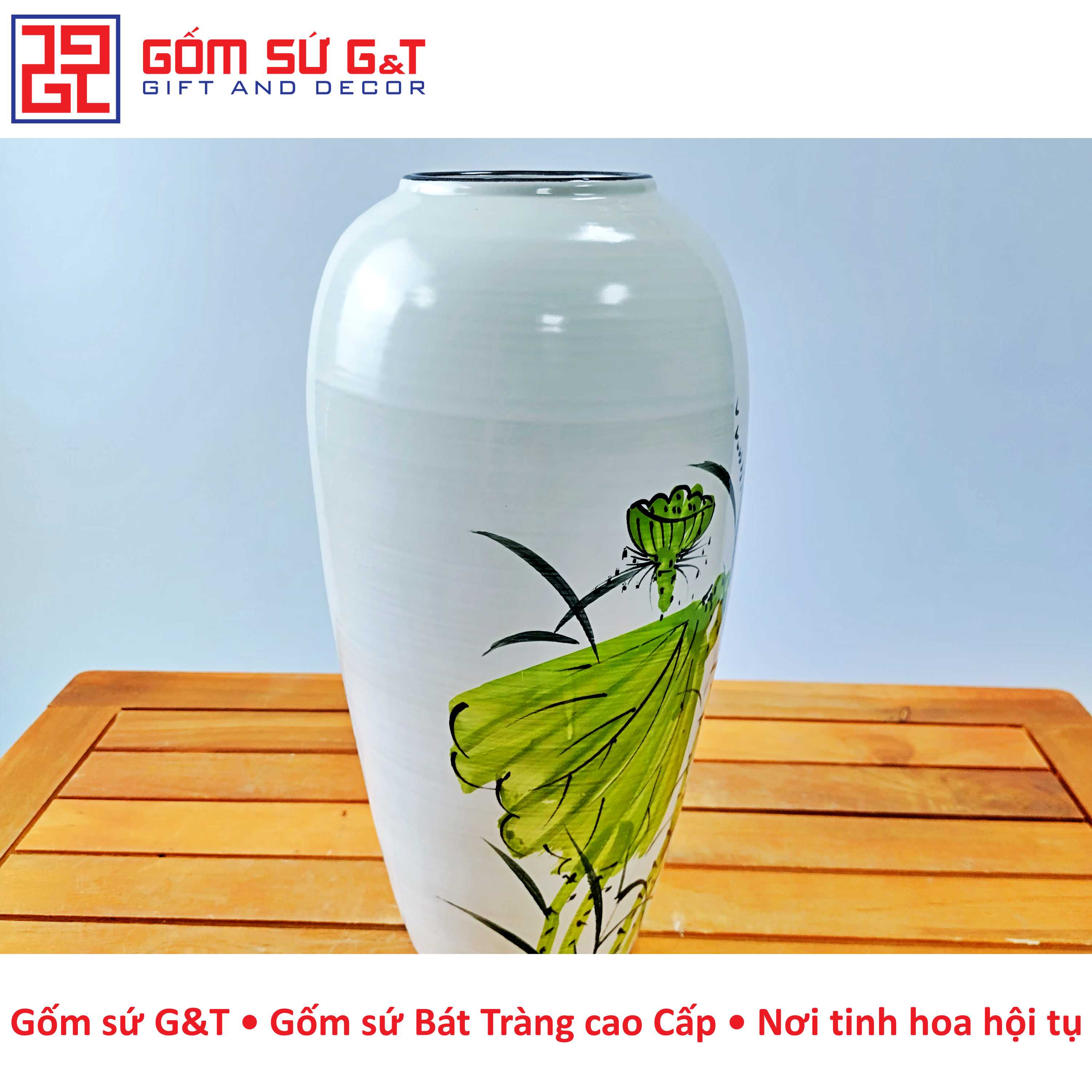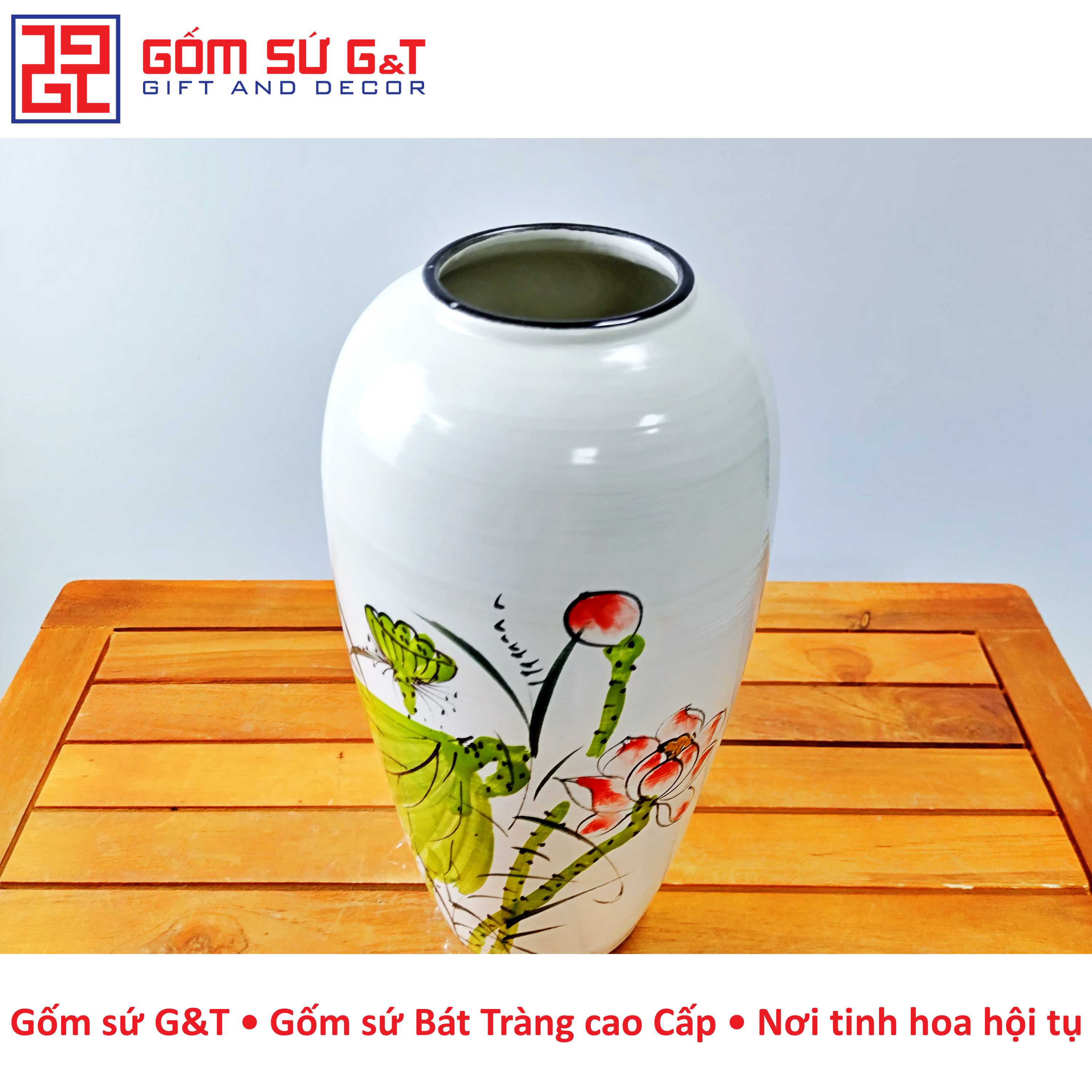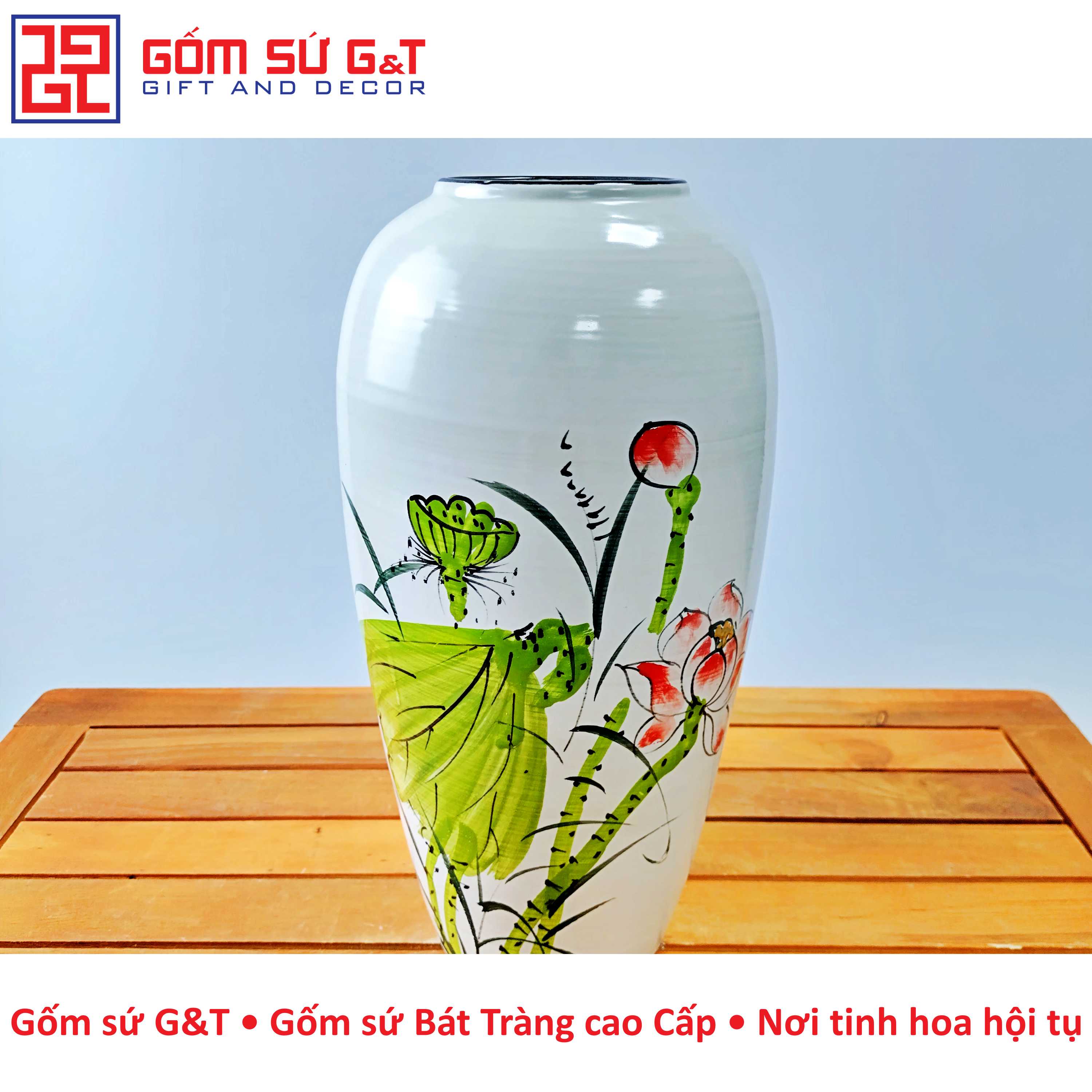 Lọ hoa dáng bom vẽ sen Bát Tràng là một sản phẩm gốm sứ truyền thống của Việt Nam, nổi tiếng với vẻ đẹp tinh tế và sự kết hợp giữa nghệ thuật truyền thống và thiết kế hiện đại.