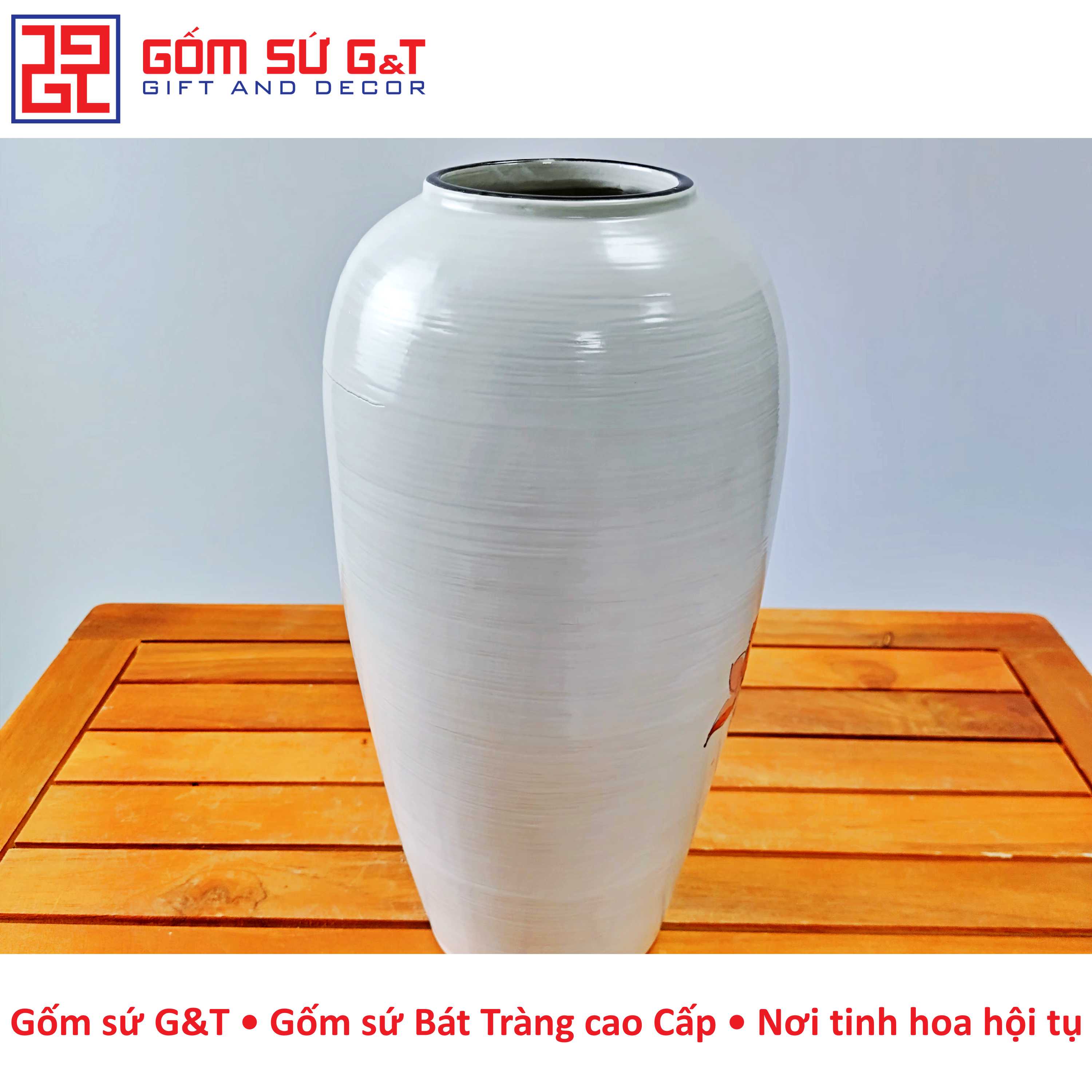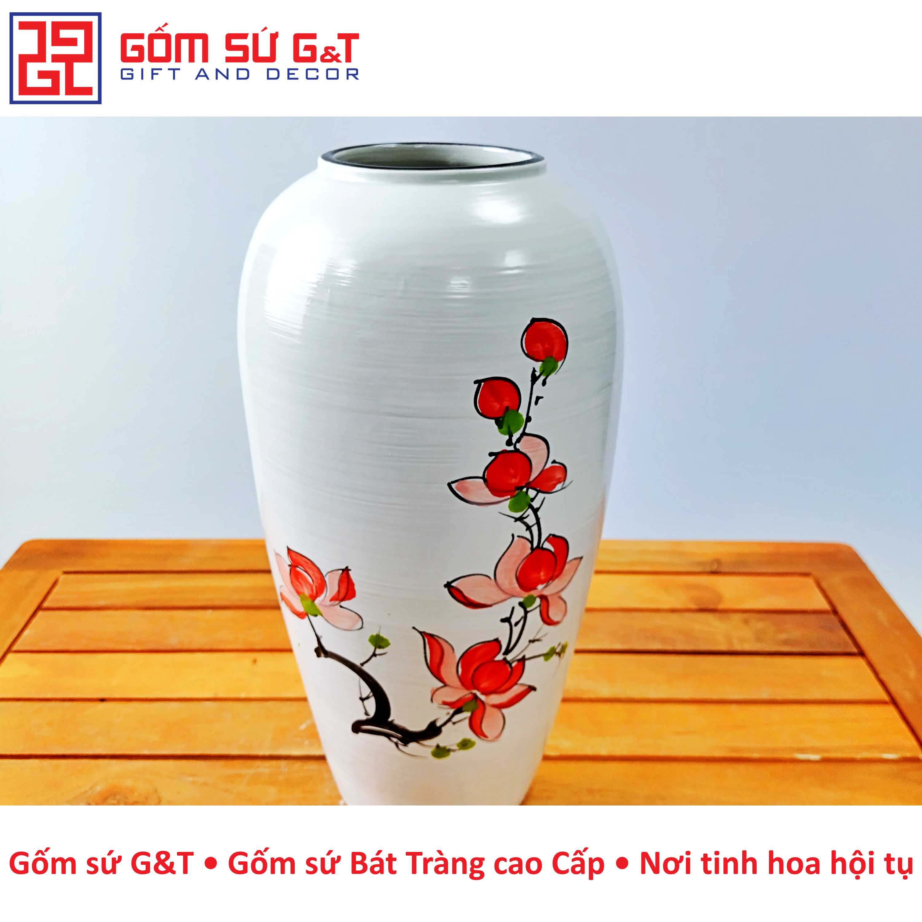 Lọ hoa dáng bom vẽ sen dây đỏ Bát Tràng là một sản phẩm gốm sứ truyền thống của Việt Nam, nổi tiếng với vẻ đẹp tinh tế và sự kết hợp giữa nghệ thuật truyền thống và thiết kế hiện đại.