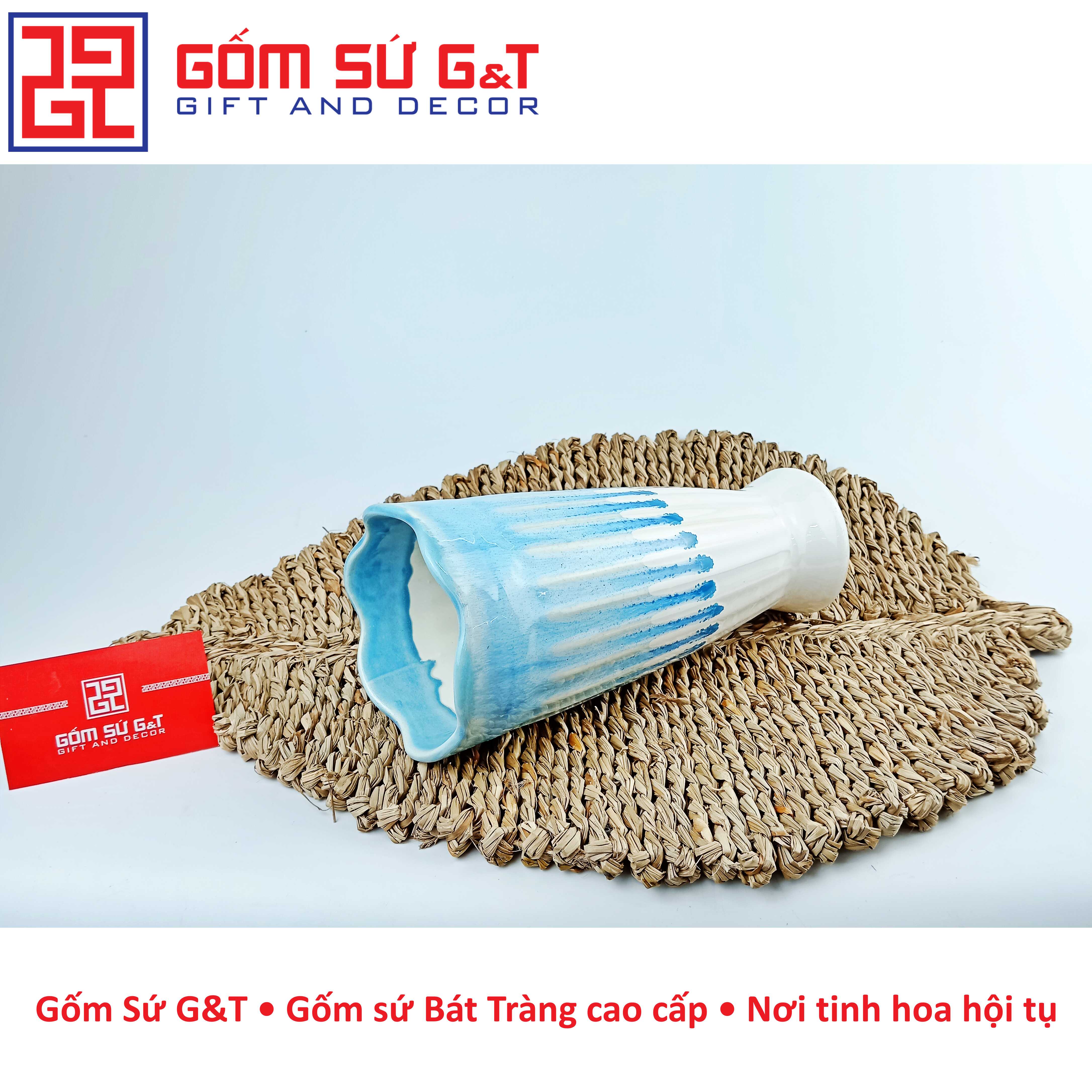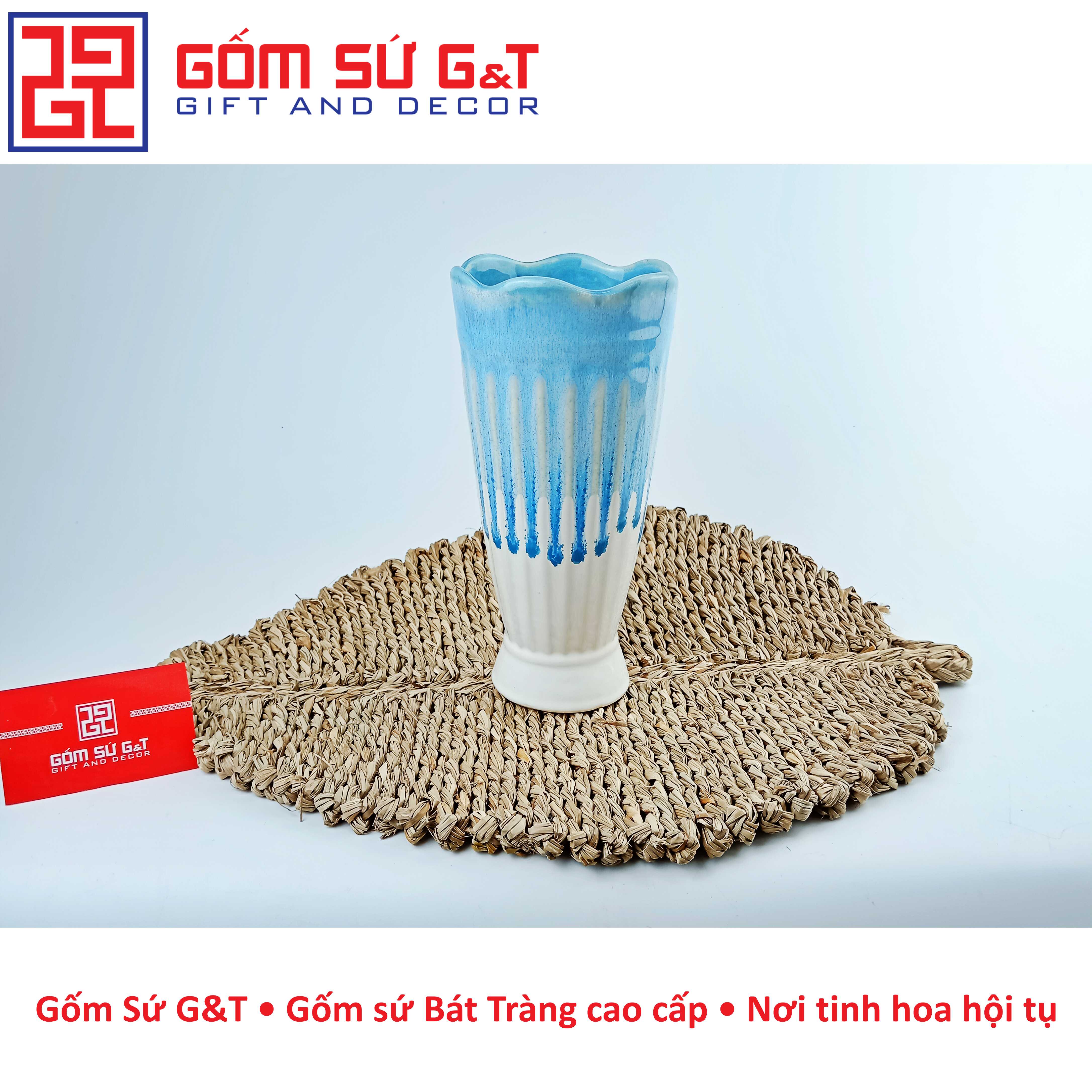 Lọ hoa dáng chân ly thấp miệng lượn men xanh cát trắng của gốm Bát Tràng có nhiều kiểu dáng khác nhau, từ kiểu dáng cổ điển đến kiểu dáng hiện đại, phù hợp với nhiều phong cách trang trí khác nhau. Chất liệu gốm sứ cao cấp giúp lọ hoa trang trí của gốm Bát Tràng có độ bền cao và độ bóng sáng đẹp mắt.
