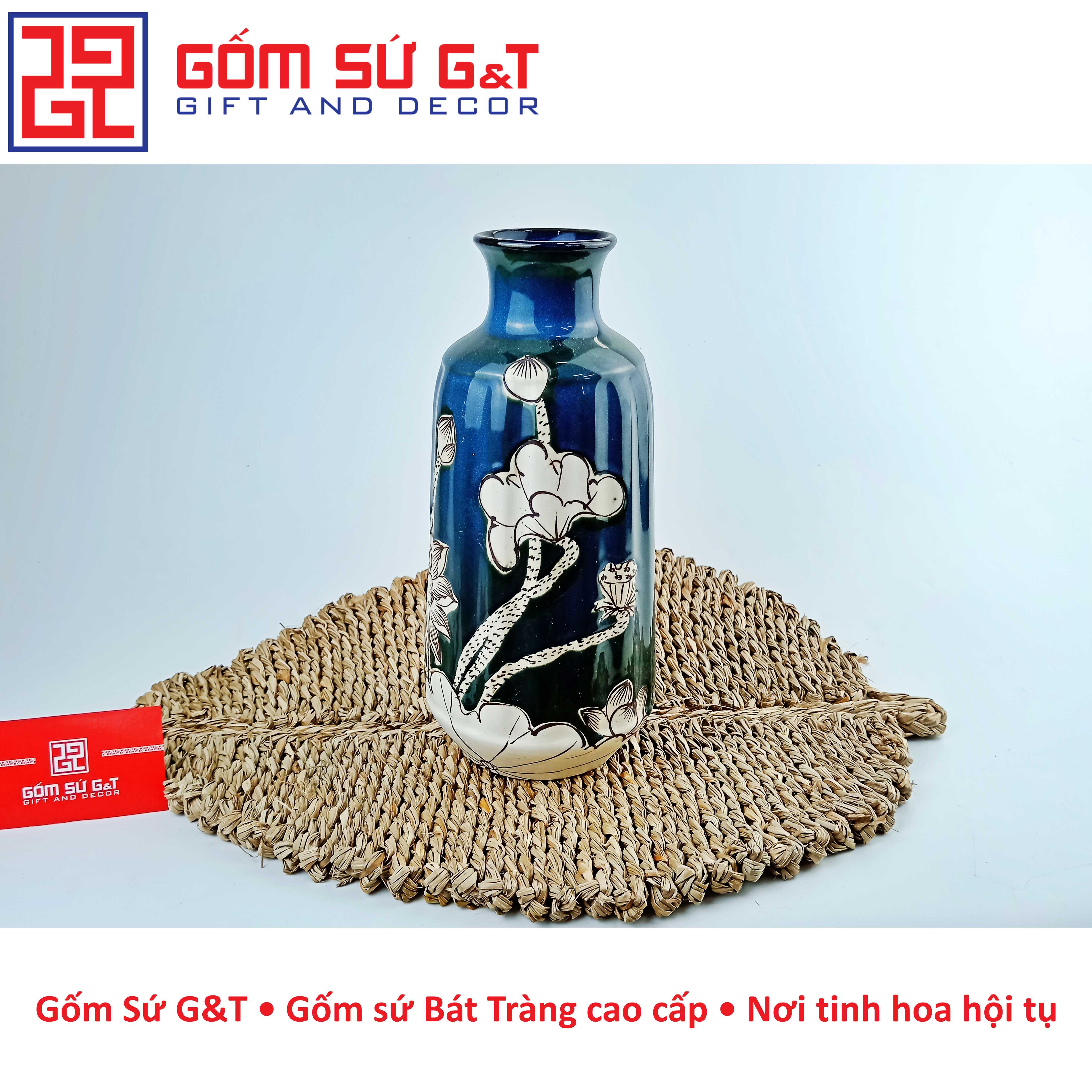 Lọ hoa dáng dọc dừa vẽ sen nổi Bát Tràng là một sản phẩm thủ công độc đáo, được làm từ chất liệu gốm sứ cao cấp. Với thiết kế tinh tế và đa dạng về kiểu dáng, lọ hoa trang trí của gốm Bát Tràng đã trở thành một trong những sản phẩm trang trí nội thất được ưa chuộng nhất hiện nay.