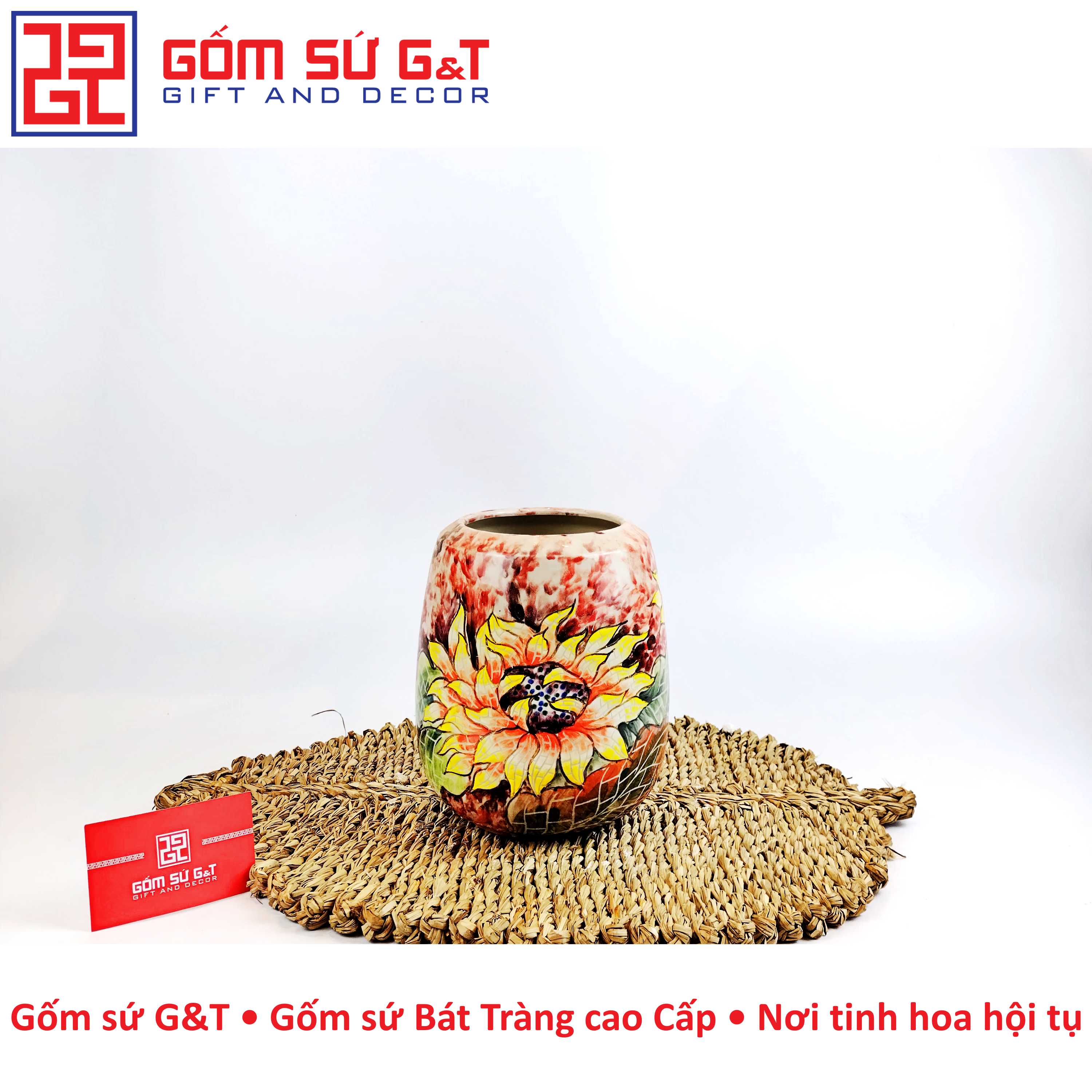 Những bức tranh tinh tế được vẽ tay trên bề mặt lọ hoa dáng đu đủ vẽ hoa hướng dương không chỉ là hình vẽ đơn thuần mà còn là những câu chuyện được thể hiện qua từng nét vẽ. Nghệ nhân tài hoa thổi hồn vào từng bông hoa, nhánh lá và cảnh quan thiên nhiên, tạo nên một thế giới màu sắc sống động trên sản phẩm gốm sứ. Sự tinh tế trong việc sắp xếp màu sắc và họa tiết vẽ tay giúp lọ hoa trở thành điểm nhấn tuyệt vời cho không gian trang trí.