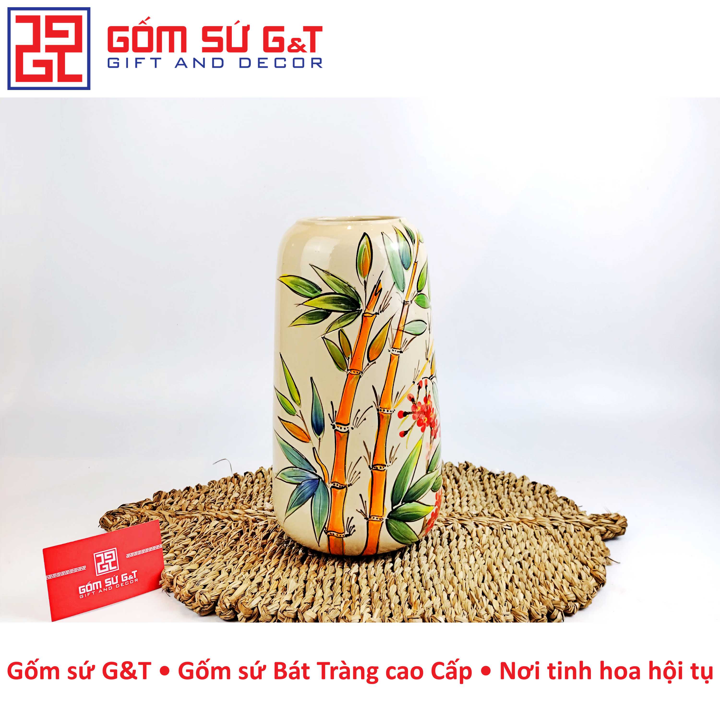 Những bức tranh tinh tế được vẽ tay trên bề mặt lọ hoa dáng vò vẽ nhị cảnh trúc đào không chỉ là hình vẽ đơn thuần mà còn là những câu chuyện được thể hiện qua từng nét vẽ. Nghệ nhân tài hoa thổi hồn vào từng chi tiết, tạo nên một thế giới màu sắc sống động trên sản phẩm gốm sứ. Sự tinh tế trong việc sắp xếp màu sắc và họa tiết vẽ tay giúp lọ hoa trở thành điểm nhấn tuyệt vời cho không gian trang trí.
