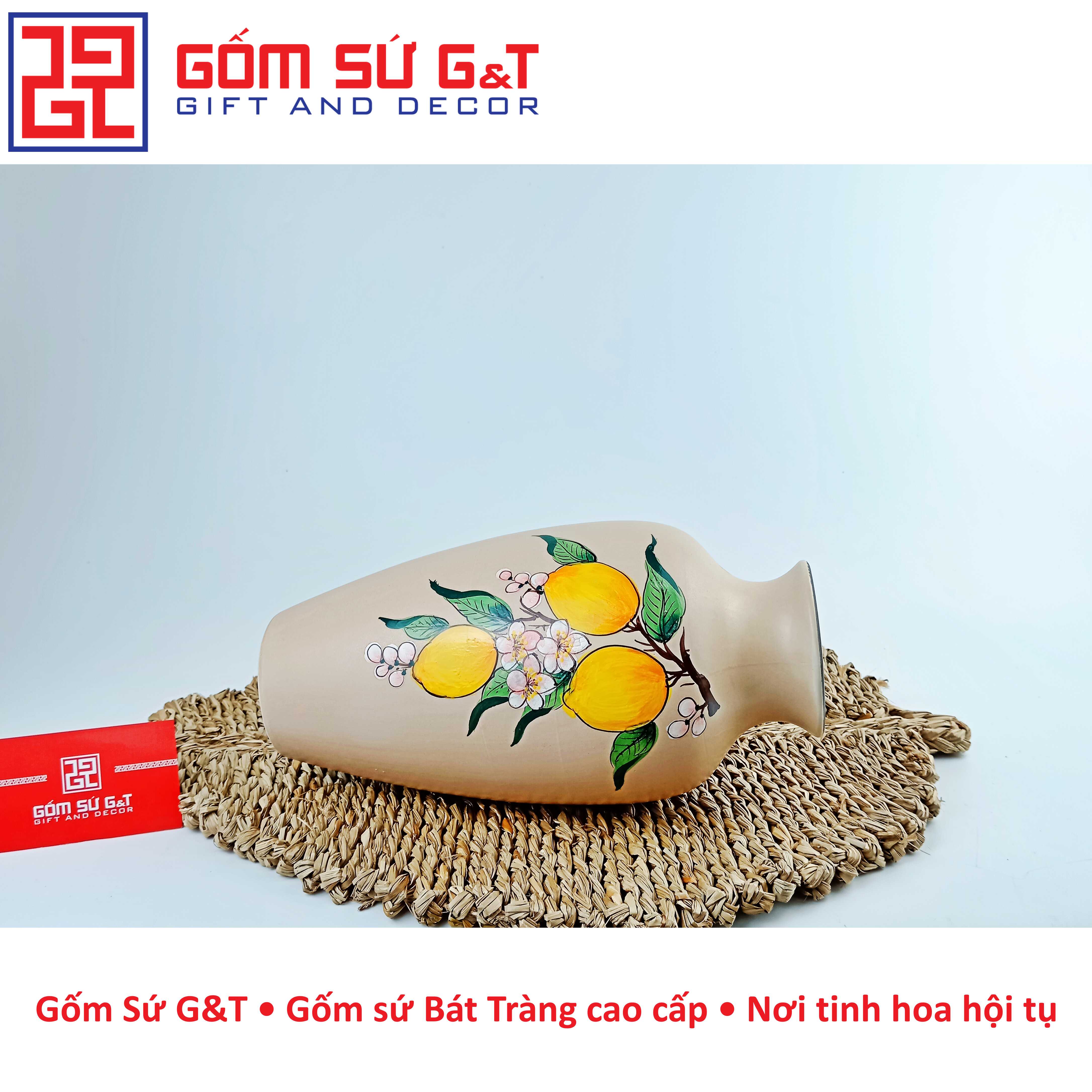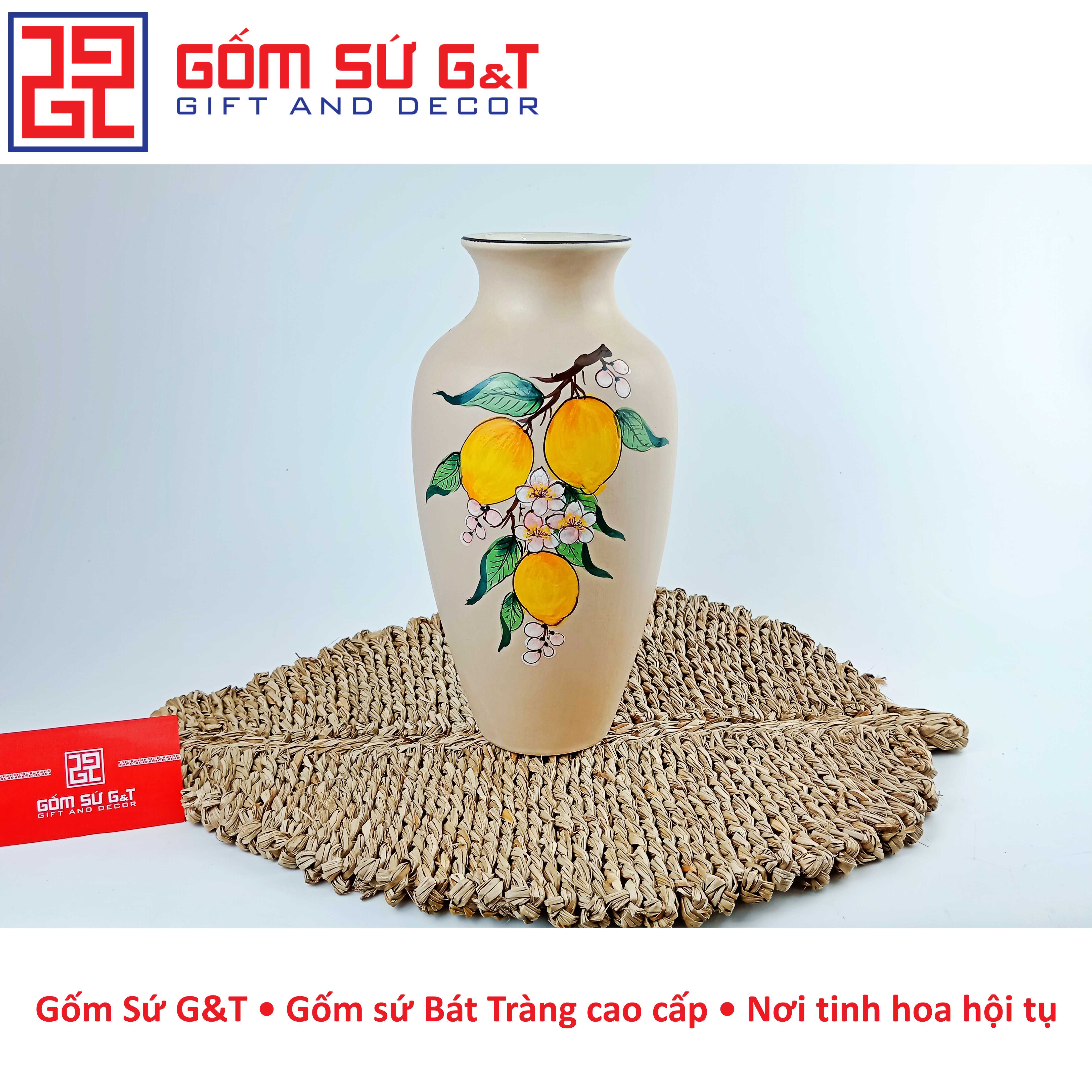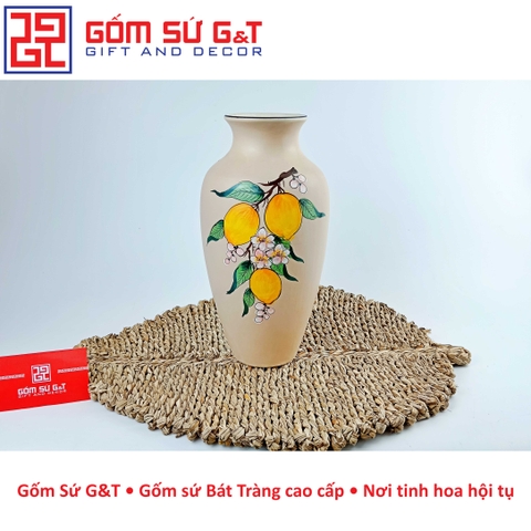 Lọ hoa dáng đùi dế vẽ cam Bát Tràng là một sản phẩm thủ công độc đáo, được làm từ chất liệu gốm sứ cao cấp. Với thiết kế tinh tế và đa dạng về kiểu dáng, lọ hoa trang trí của gốm Bát Tràng đã trở thành một trong những sản phẩm trang trí nội thất được ưa chuộng nhất hiện nay.