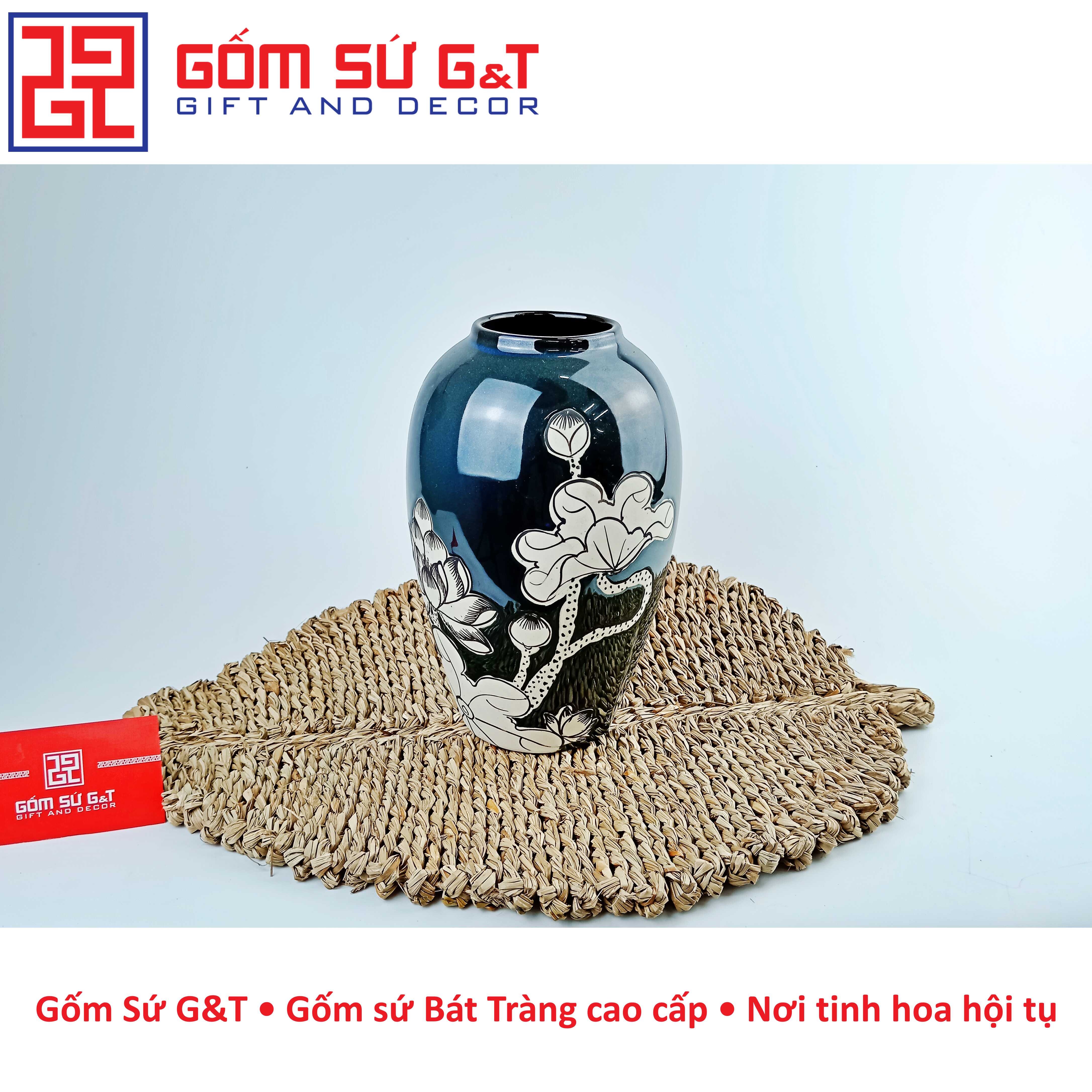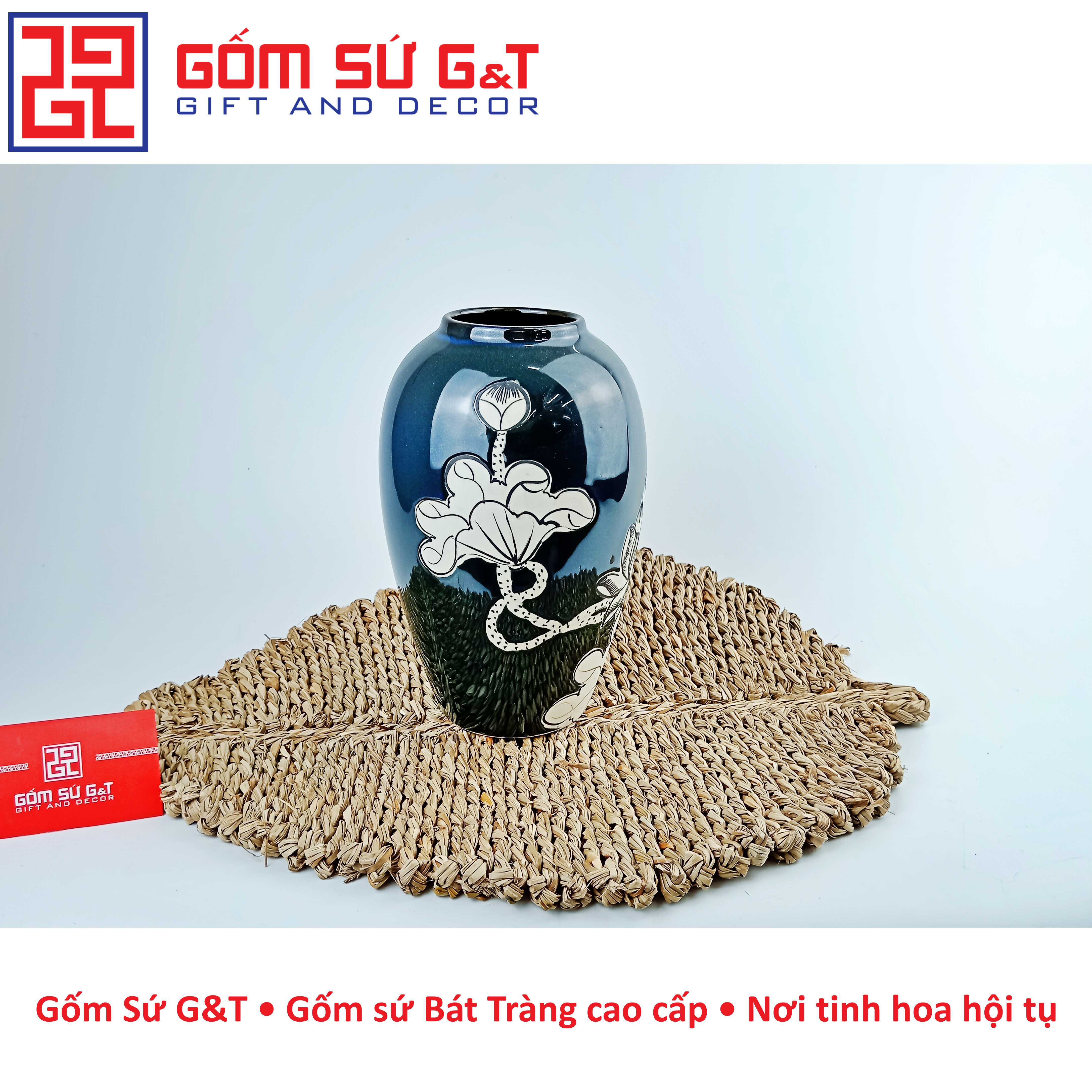Lọ hoa dáng quả xoài vẽ sen nổi của gốm Bát Tràng có nhiều kiểu dáng khác nhau, từ kiểu dáng cổ điển đến kiểu dáng hiện đại, phù hợp với nhiều phong cách trang trí khác nhau. Chất liệu gốm sứ cao cấp giúp lọ hoa trang trí của gốm Bát Tràng có độ bền cao và độ bóng sáng đẹp mắt.