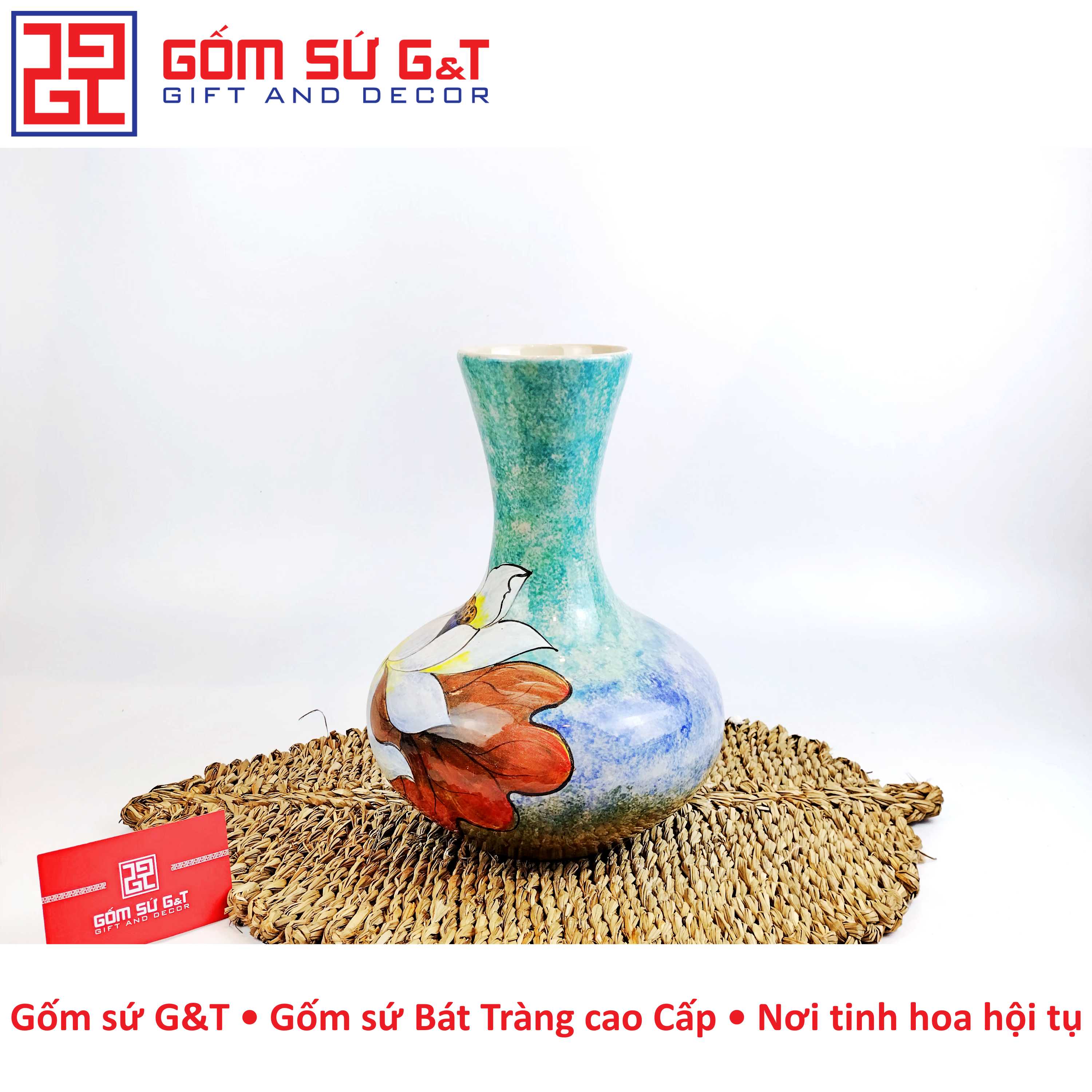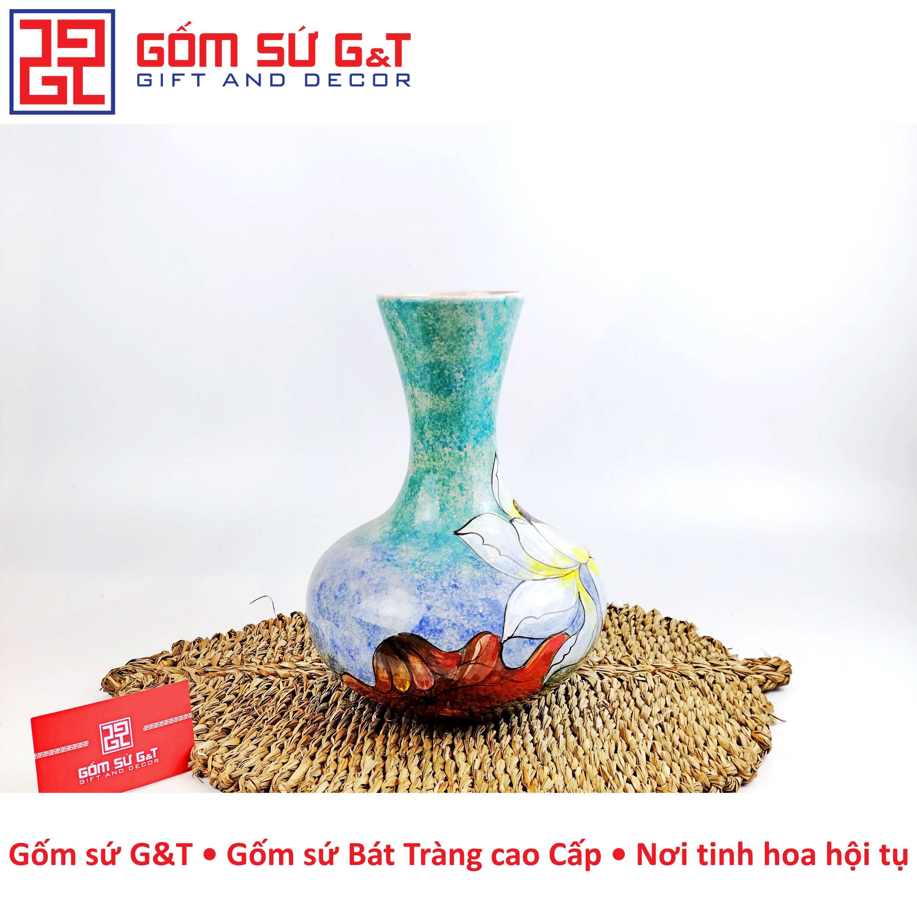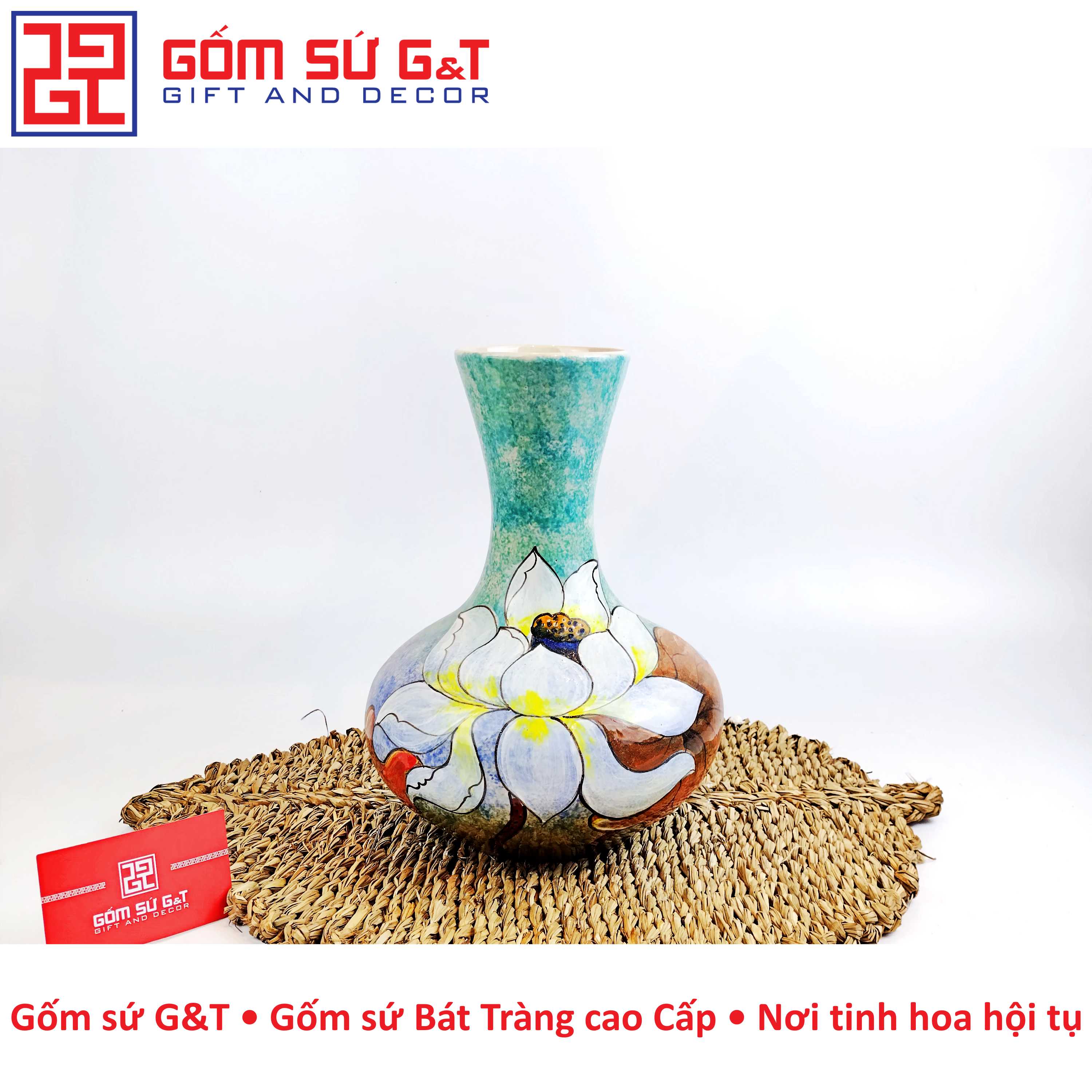 Những bức tranh tinh tế được vẽ tay trên bề mặt lọ hoa dáng tỏi dẹt vẽ bạch liên không chỉ là hình vẽ đơn thuần mà còn là những câu chuyện được thể hiện qua từng nét vẽ. Nghệ nhân tài hoa thổi hồn vào từng chi tiết, tạo nên một thế giới màu sắc sống động trên sản phẩm gốm sứ. Sự tinh tế trong việc sắp xếp màu sắc và họa tiết vẽ tay giúp lọ hoa trở thành điểm nhấn tuyệt vời cho không gian trang trí.
