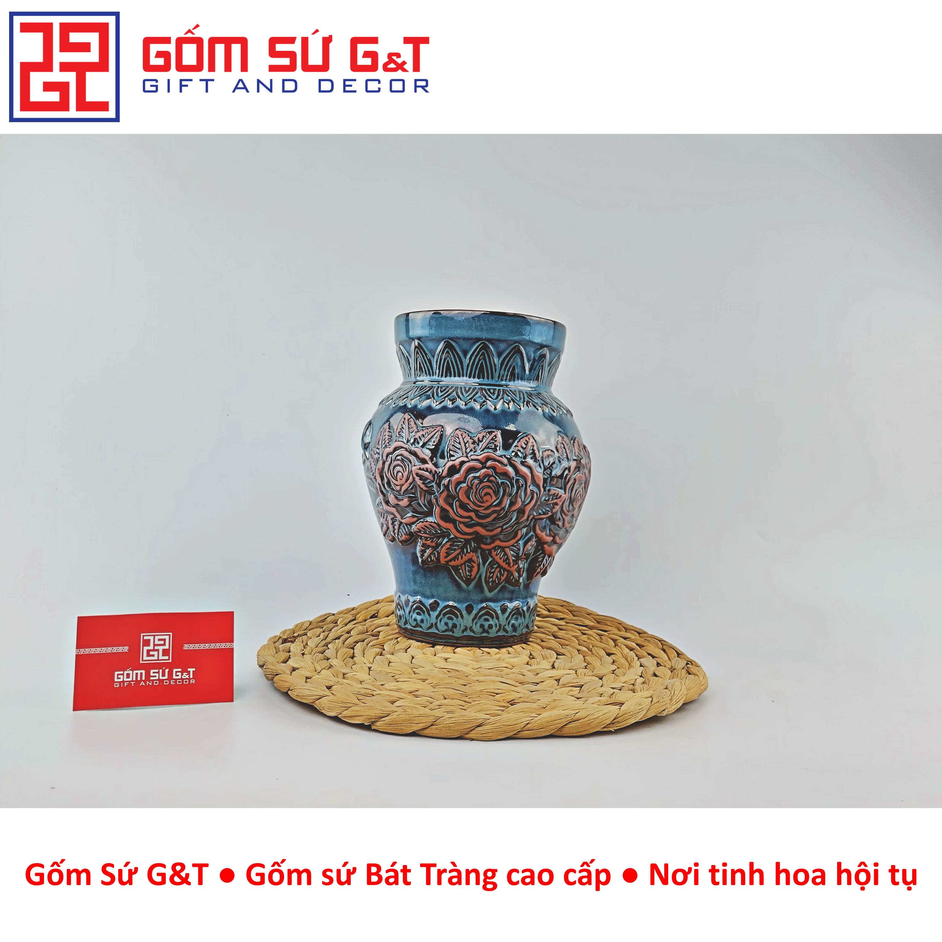 Lọ hoa hỏa biến cổ thẳng khắc hoa hồng là sự kết hợp hoàn hảo giữa nghệ thuật gốm sứ truyền thống và công nghệ men hiện đại. Không chỉ đơn thuần là một chiếc bình hoa, sản phẩm còn mang ý nghĩa phong thủy, giúp gia chủ thu hút tài lộc, bình an và hạnh phúc.