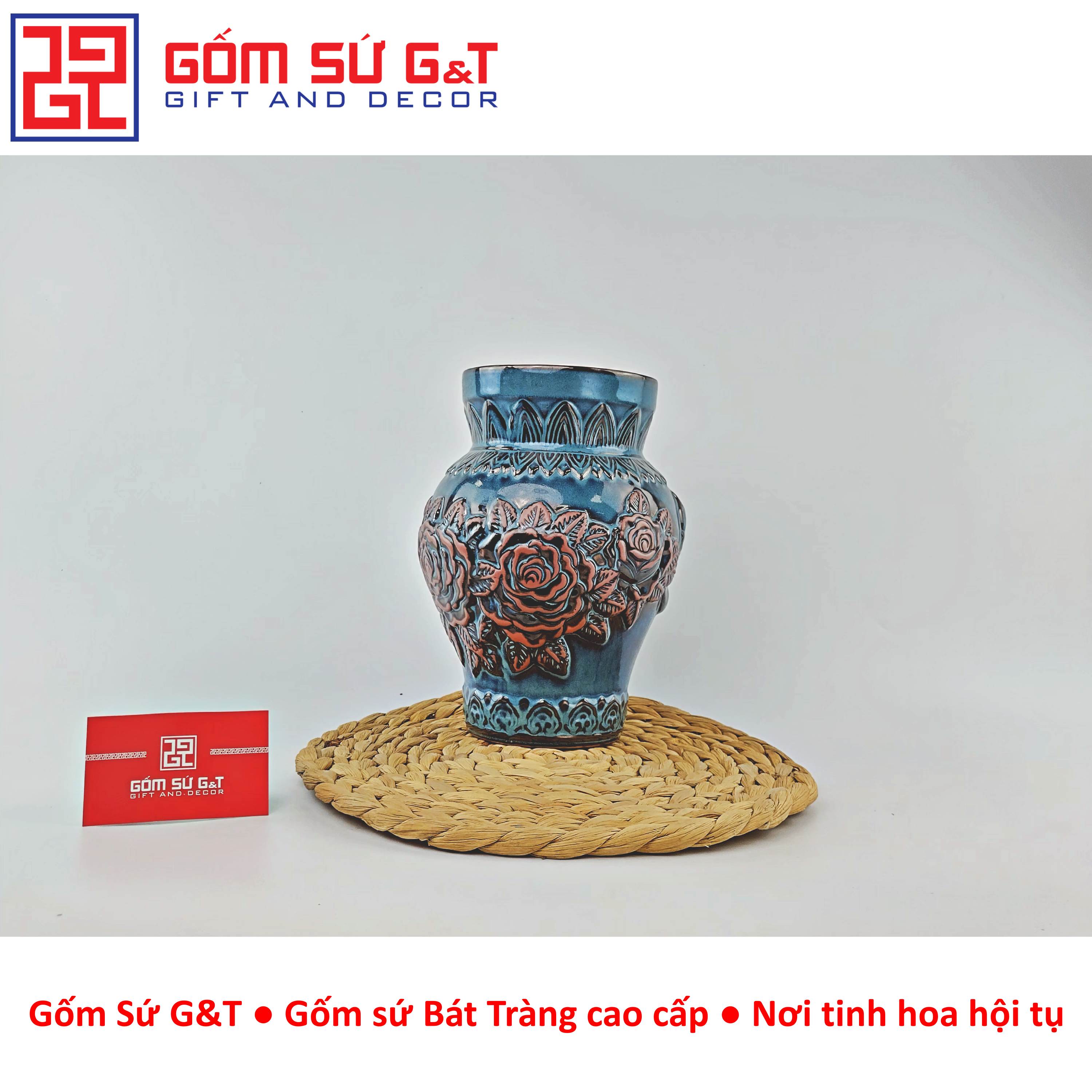 Lọ hoa hỏa biến là dòng sản phẩm cao cấp của làng gốm Bát Tràng, nổi bật với màu sắc biến ảo độc nhất, tạo nên vẻ đẹp huyền bí, sang trọng. Sản phẩm lọ hoa hỏa biến cổ thẳng khắc hoa hồng không chỉ là vật dụng cắm hoa mà còn là một tác phẩm nghệ thuật mang ý nghĩa phong thủy sâu sắc.