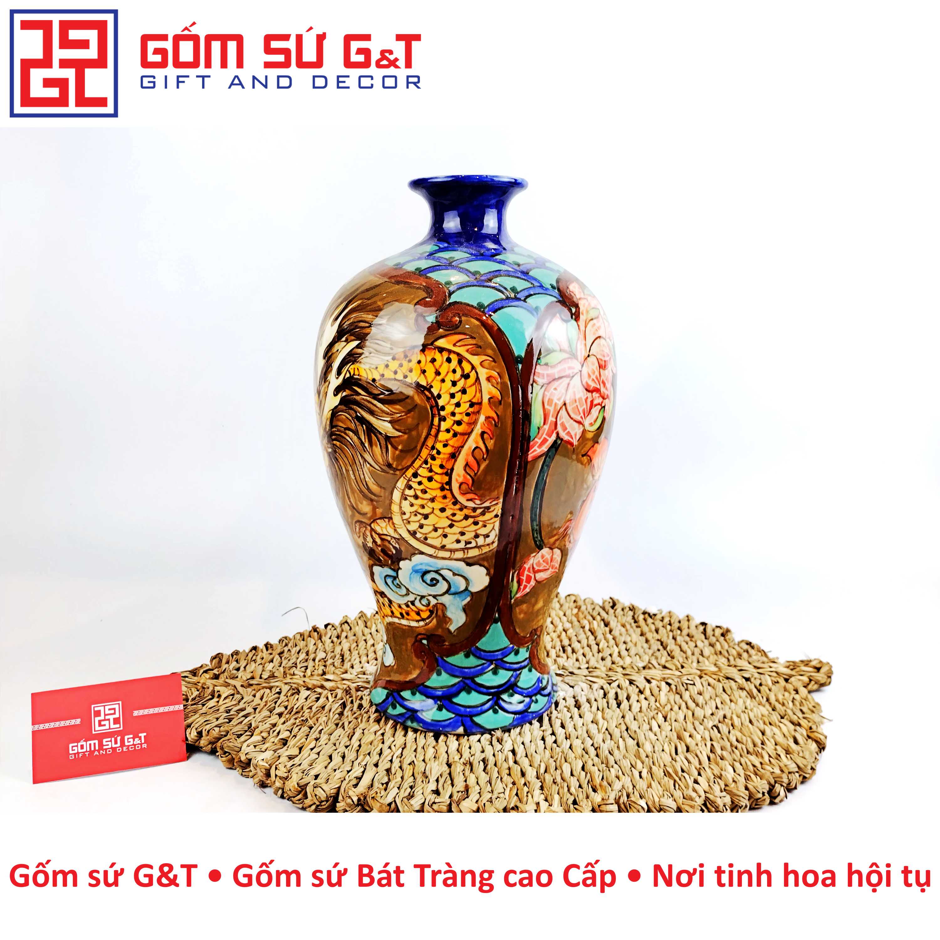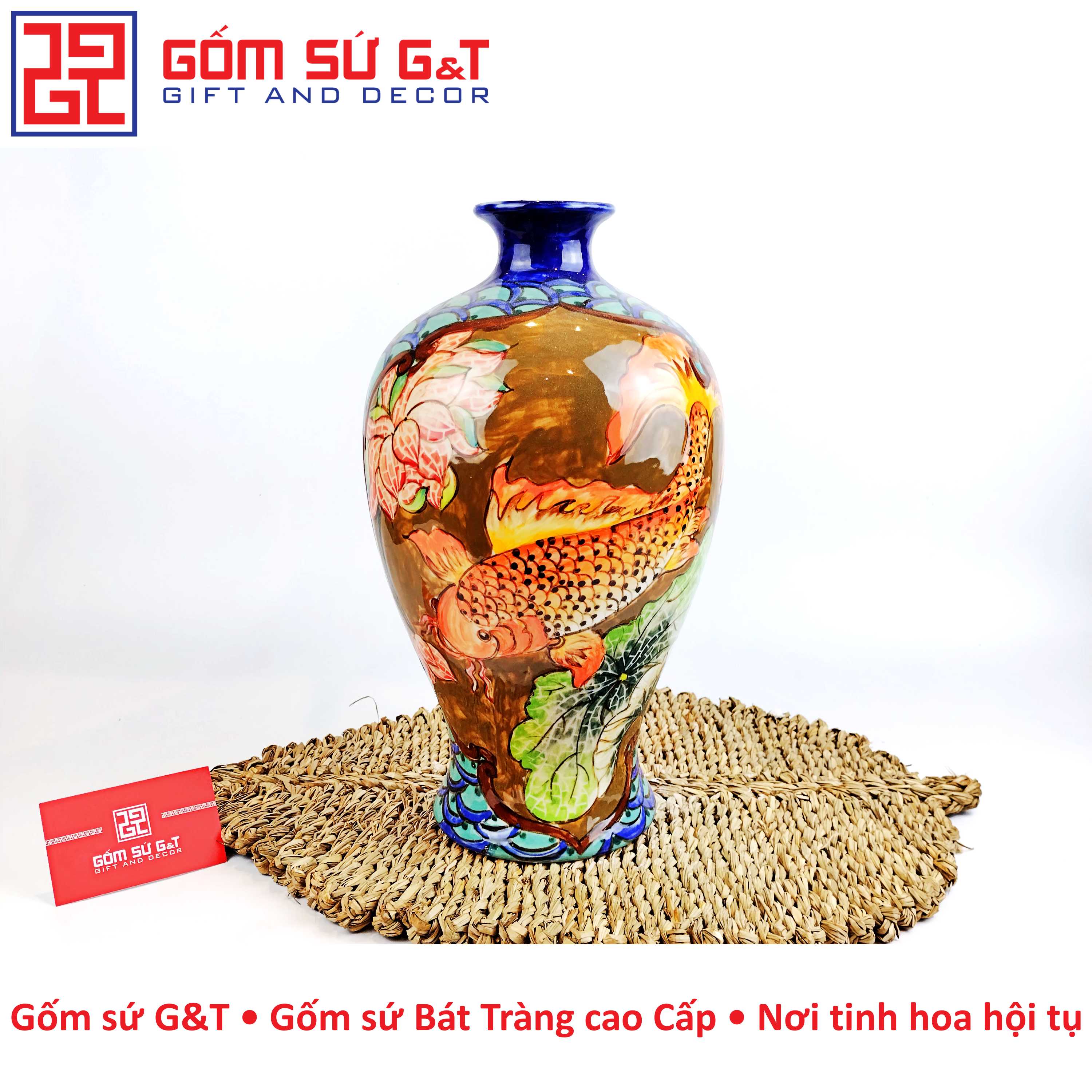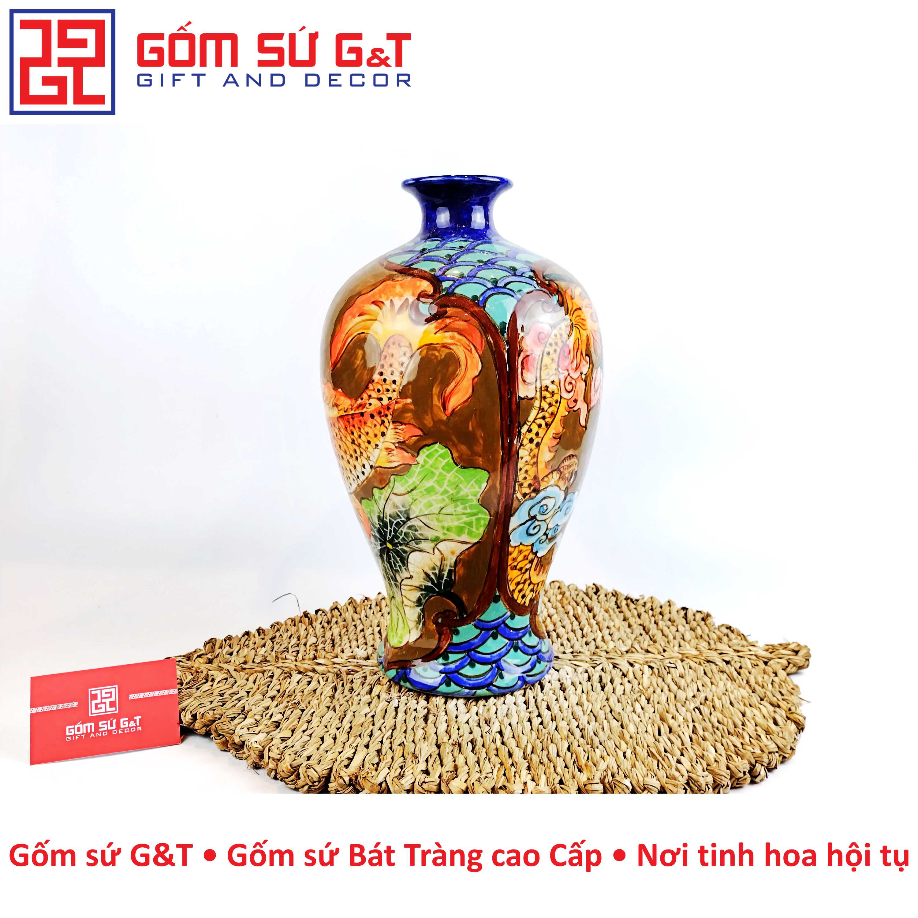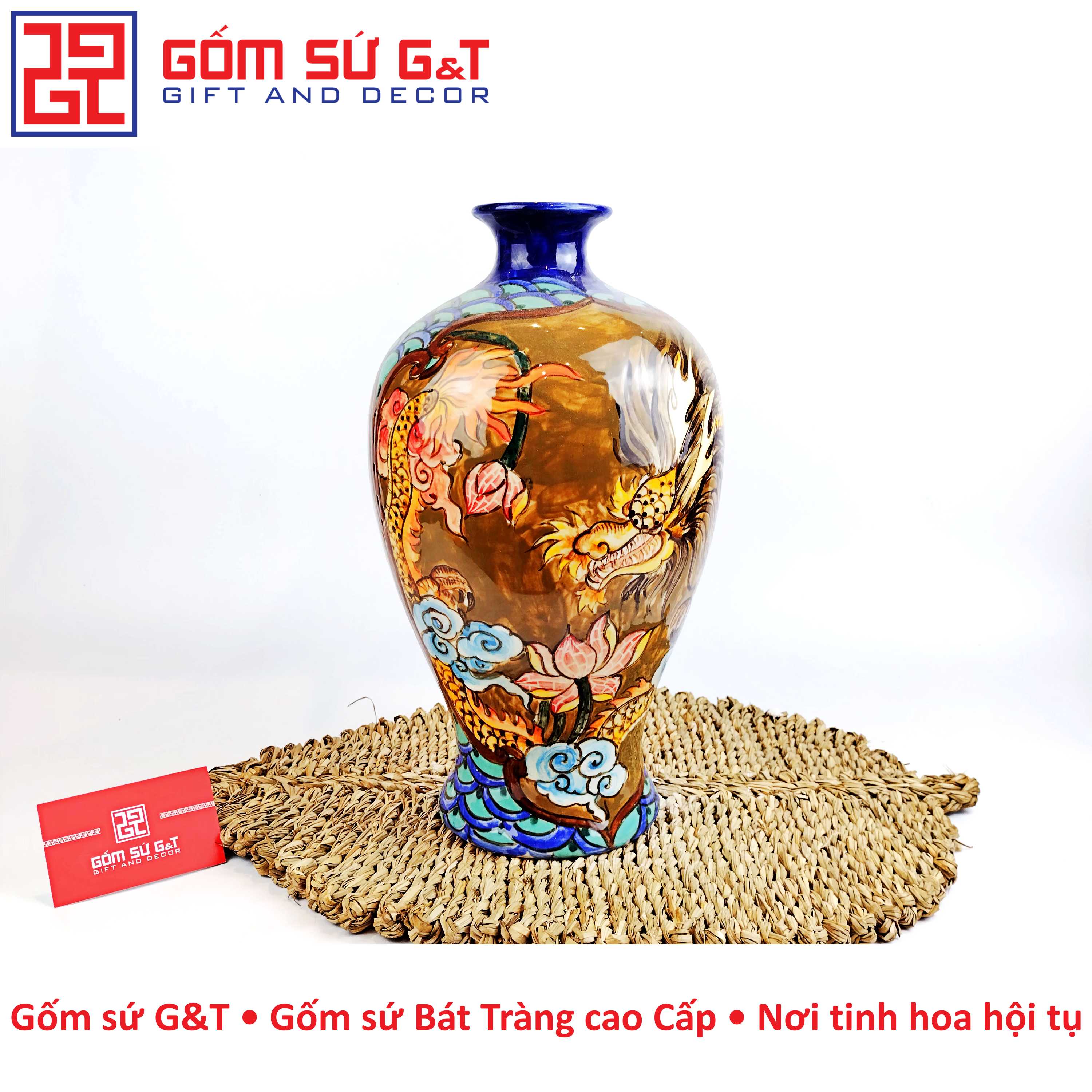 Những bức tranh tinh tế được vẽ tay trên bề mặt mai bình nhị cảnh cá chép hóa rồng không chỉ là hình vẽ đơn thuần mà còn là những câu chuyện được thể hiện qua từng nét vẽ. Nghệ nhân tài hoa thổi hồn vào từng chi tiết, tạo nên một thế giới màu sắc sống động trên sản phẩm gốm sứ. Sự tinh tế trong việc sắp xếp màu sắc và họa tiết vẽ tay giúp lọ hoa trở thành điểm nhấn tuyệt vời cho không gian trang trí.